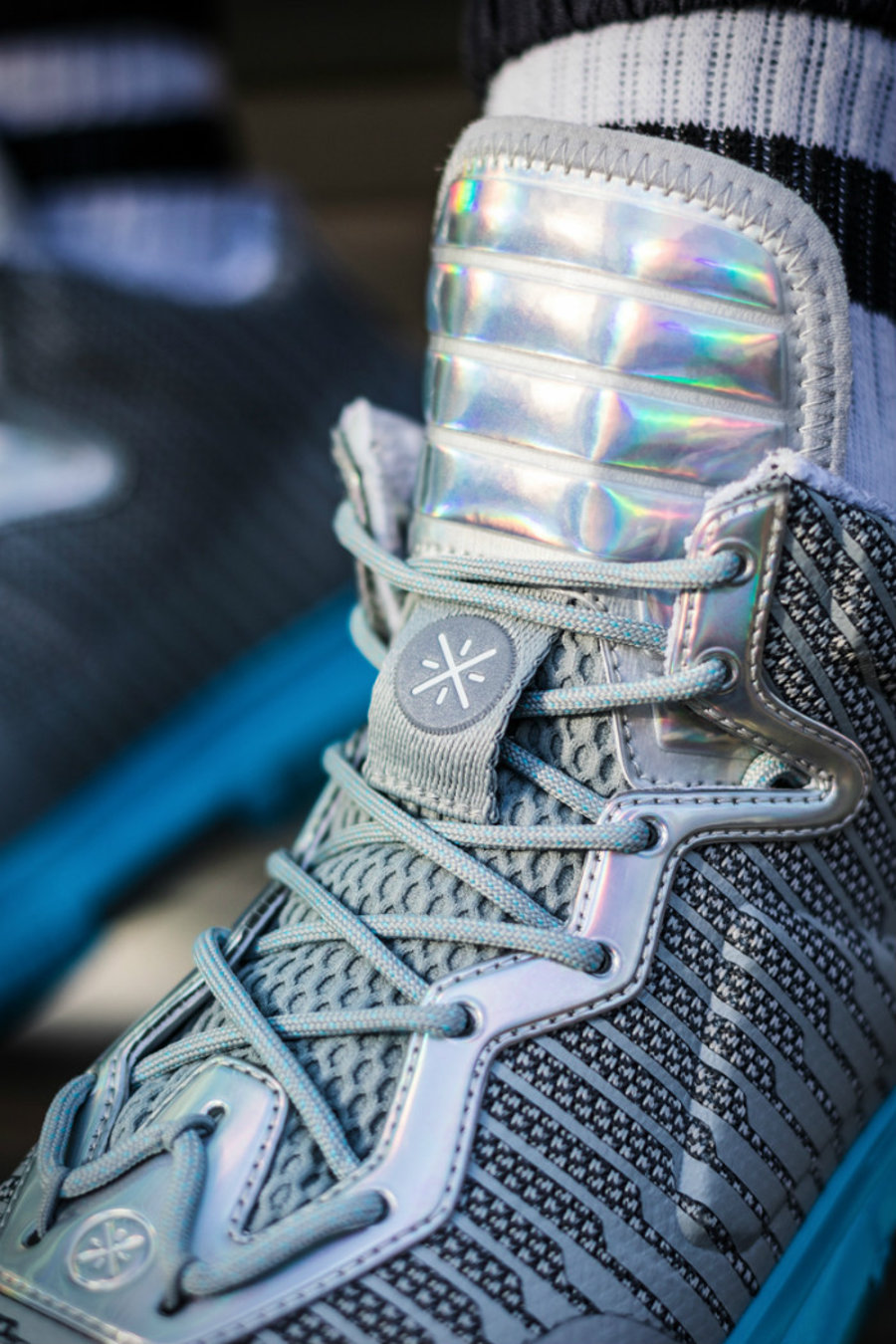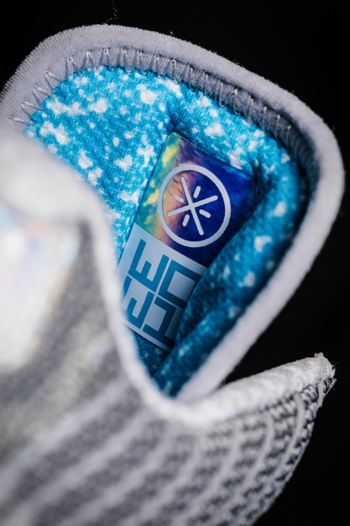 将全息炫彩贴片应用于 WOW 1 鞋身轮廓之上,