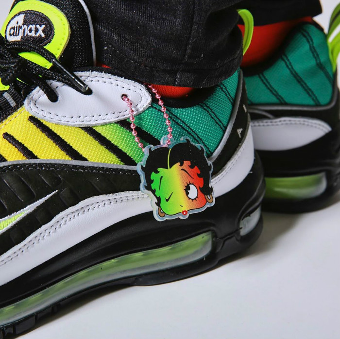 特别值得一提的是,同 Nike 联名的 4 款球鞋,都将附赠一枚 Betty Boop 贝蒂娃娃的联名吊牌。