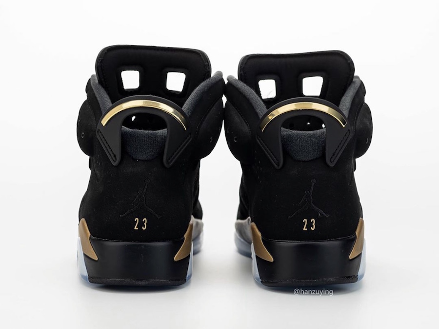 鞋舌 Jumpman Logo 同样以金色浮雕呈现,跟常规 Air Jordan 6 最大不同在于后跟位置飞人标志下方,额外加入金色 23 数字,精致醒目,彰显 DMP 的特殊身份!