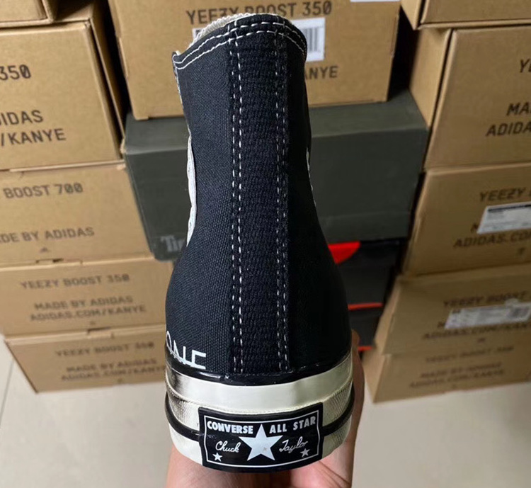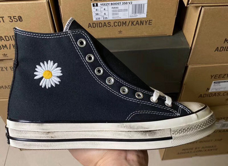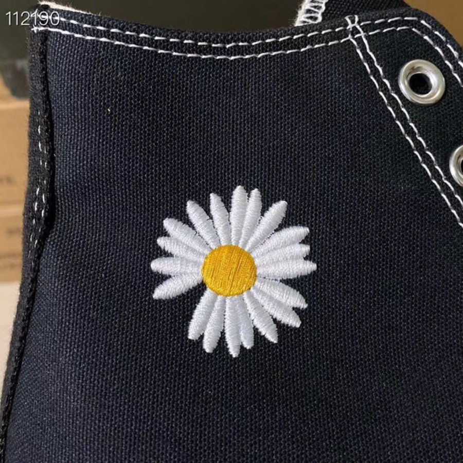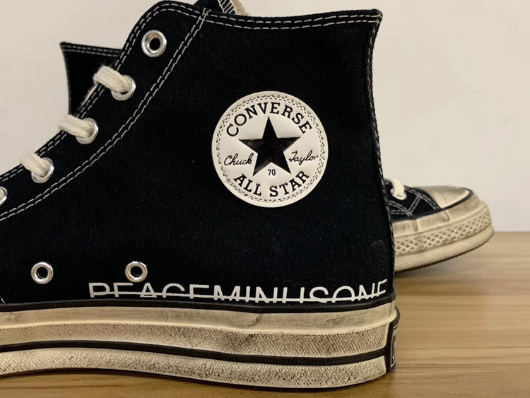 整双鞋以经典的黑色 Converse Chuck 70 为蓝本,最醒目的当属帆布鞋面外侧加入的 PEACEMINUSONE 标志性雏菊刺绣 Logo,彰显精致的同时呈现出十足厚重的质感。