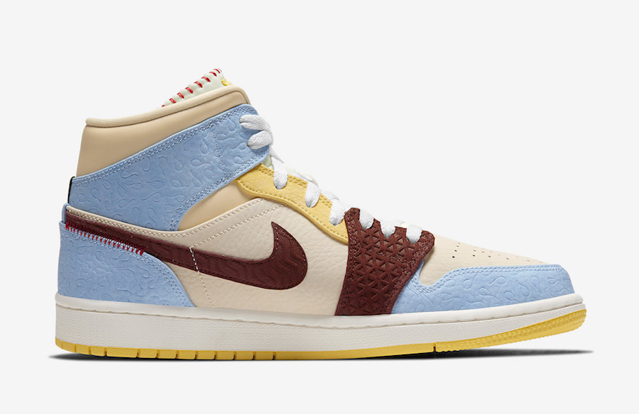 将非洲风格的设计与手工缝制细节运用到这双 Air Jordan 1 mid 中,以纪念品牌创始人的非洲血脉。