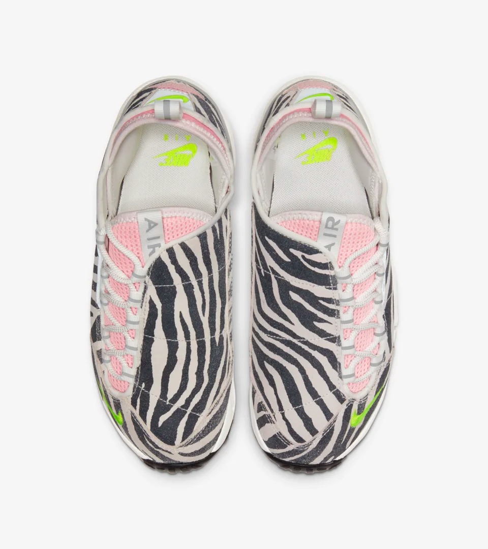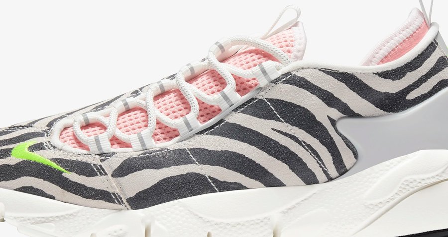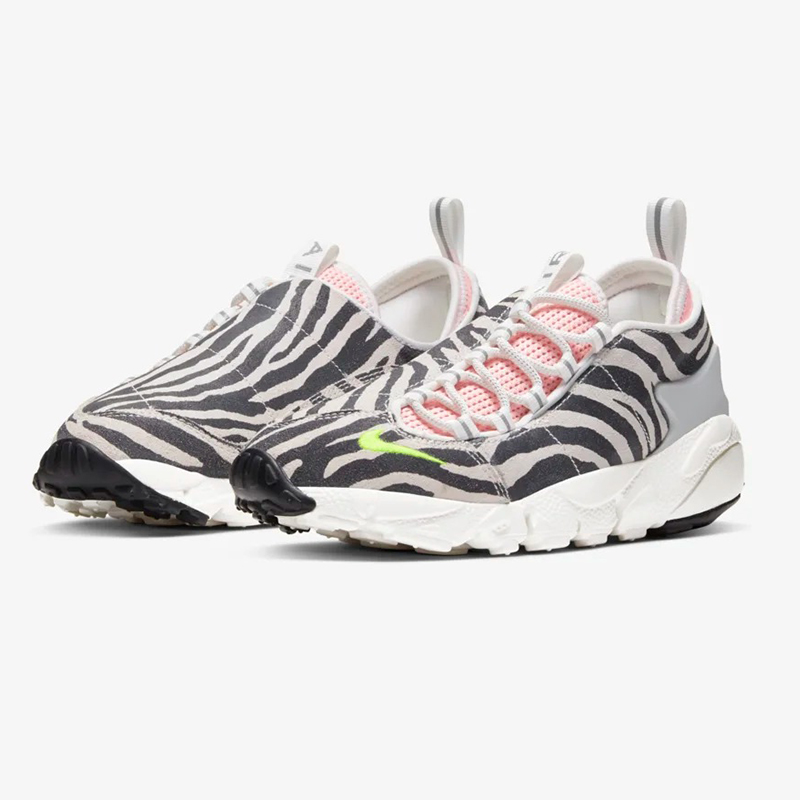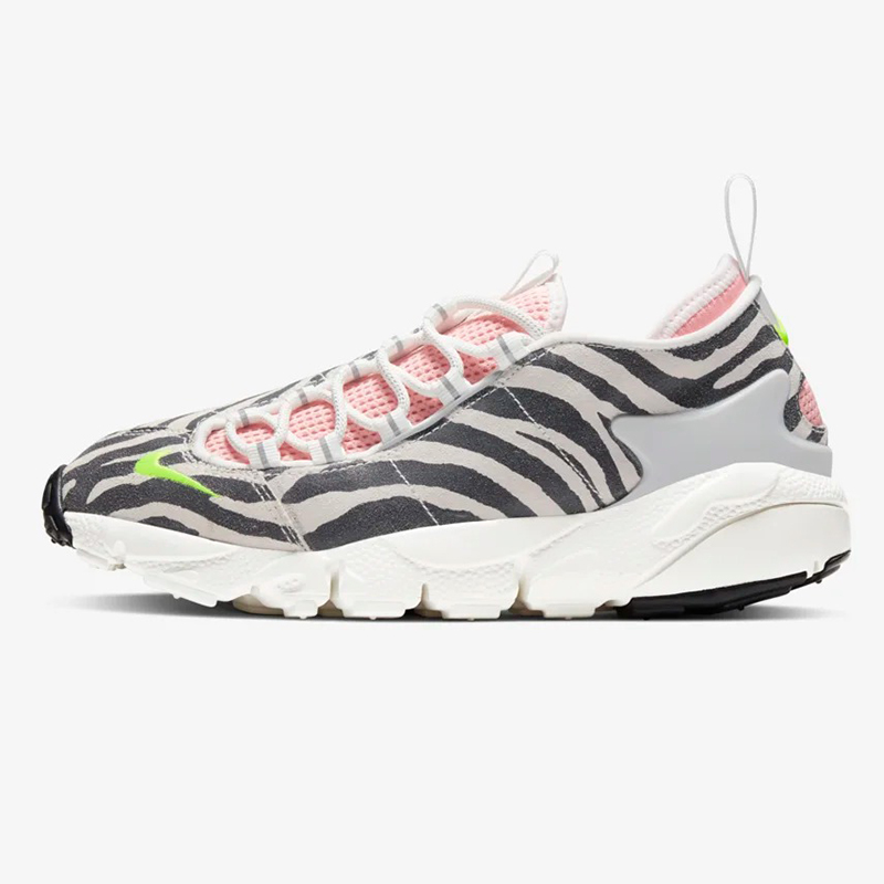 Air Footscape NXN 这双鞋融入元年款的鞋身、外底设计,经典斑马纹翻毛皮革与对比强烈的粉色内衬,再现了 90 年纽约俱乐部的朋克态度。