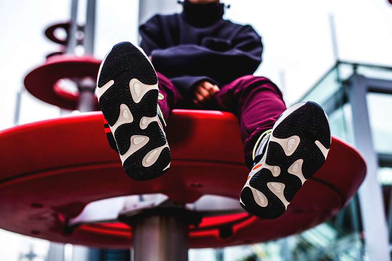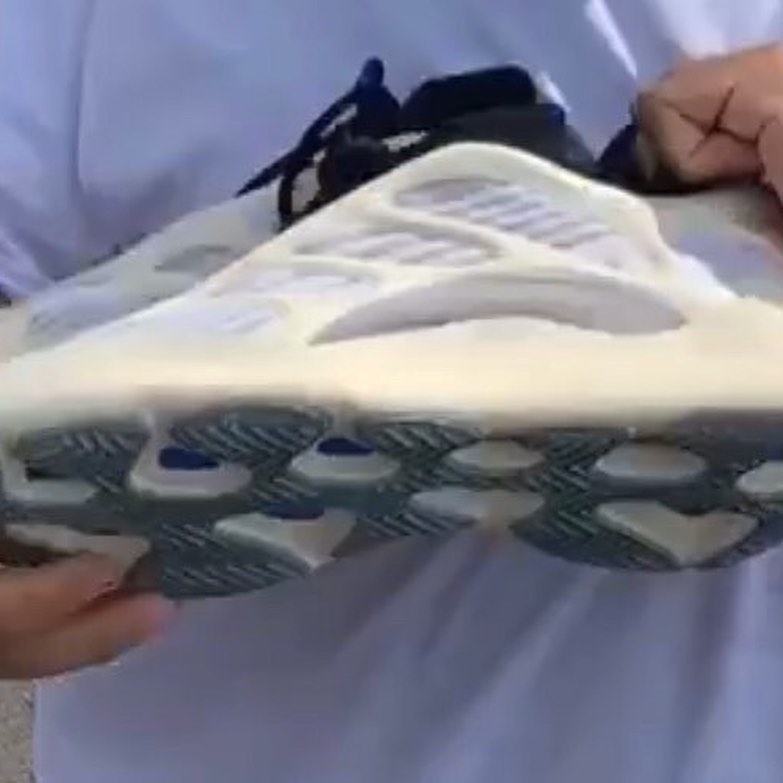 另外,此前侃爷机场被 DJ Khaled 切走的那双上脚细节中,我们发现外底镂空处,不再是白色 Boost 颗粒,而为蓝色细节。