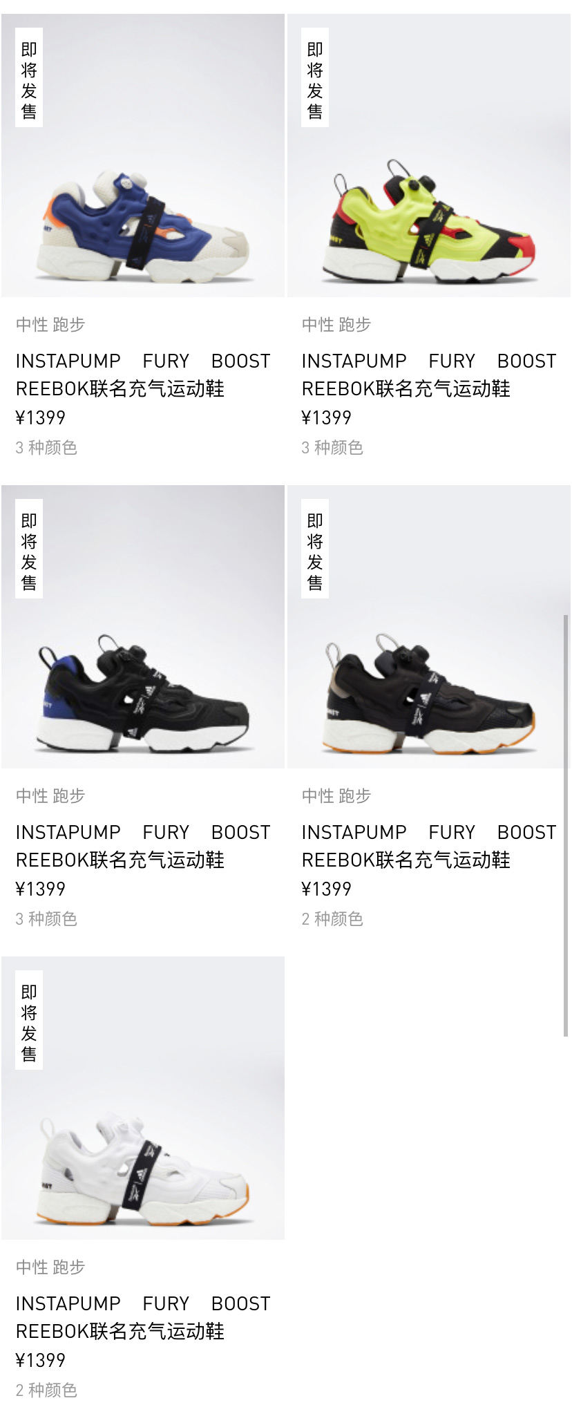 除了天猫旗舰店补货 Yeezy 外,adidas.com.cn 中国官网还将发售 Pump Fury Boost 多个配色。