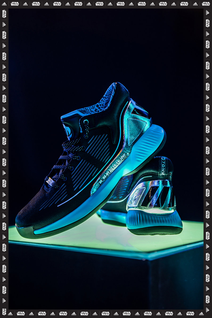 此次联名选择 Harden Vol.4、Dame 5 和 D Rose 10 三款战靴,均以光剑为灵感。
