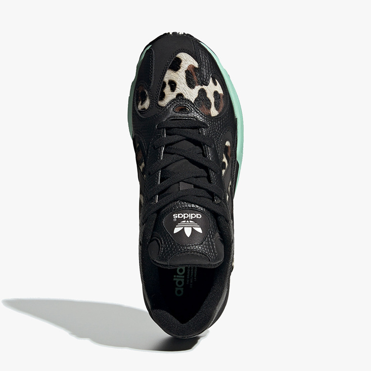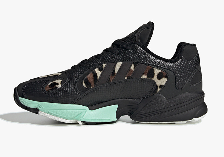 同时鞋上与鞋身加入更为狂野的豹纹图案,并以马毛材质呈现,标志性三线 Logo 映衬在其中,表现极为抢眼。