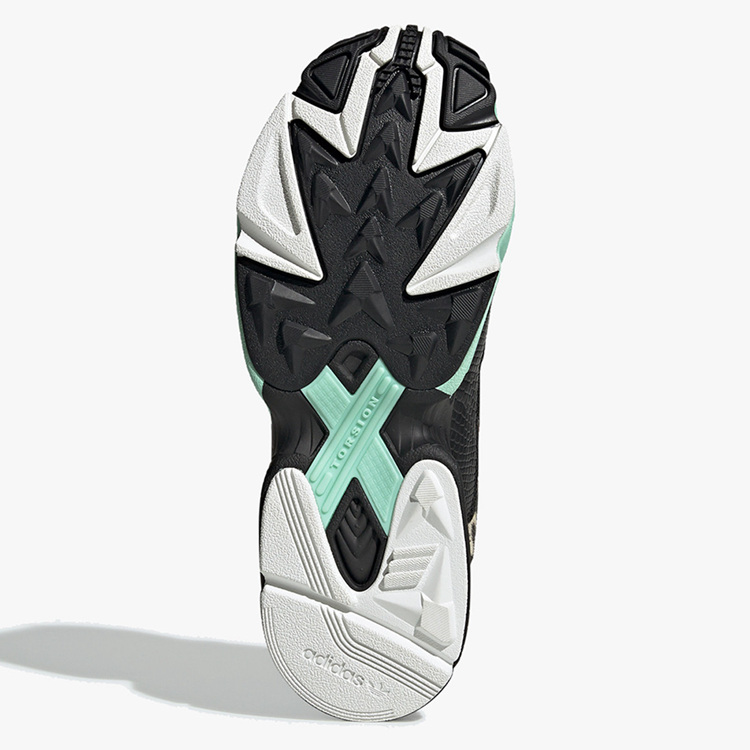 两款配色均以黑色作为底色,鞋身材质极为丰富,其中一款配色中底前半部分加入清新蒂芙尼绿色,侧身以及鞋舌使用大胆蛇皮纹路皮革。