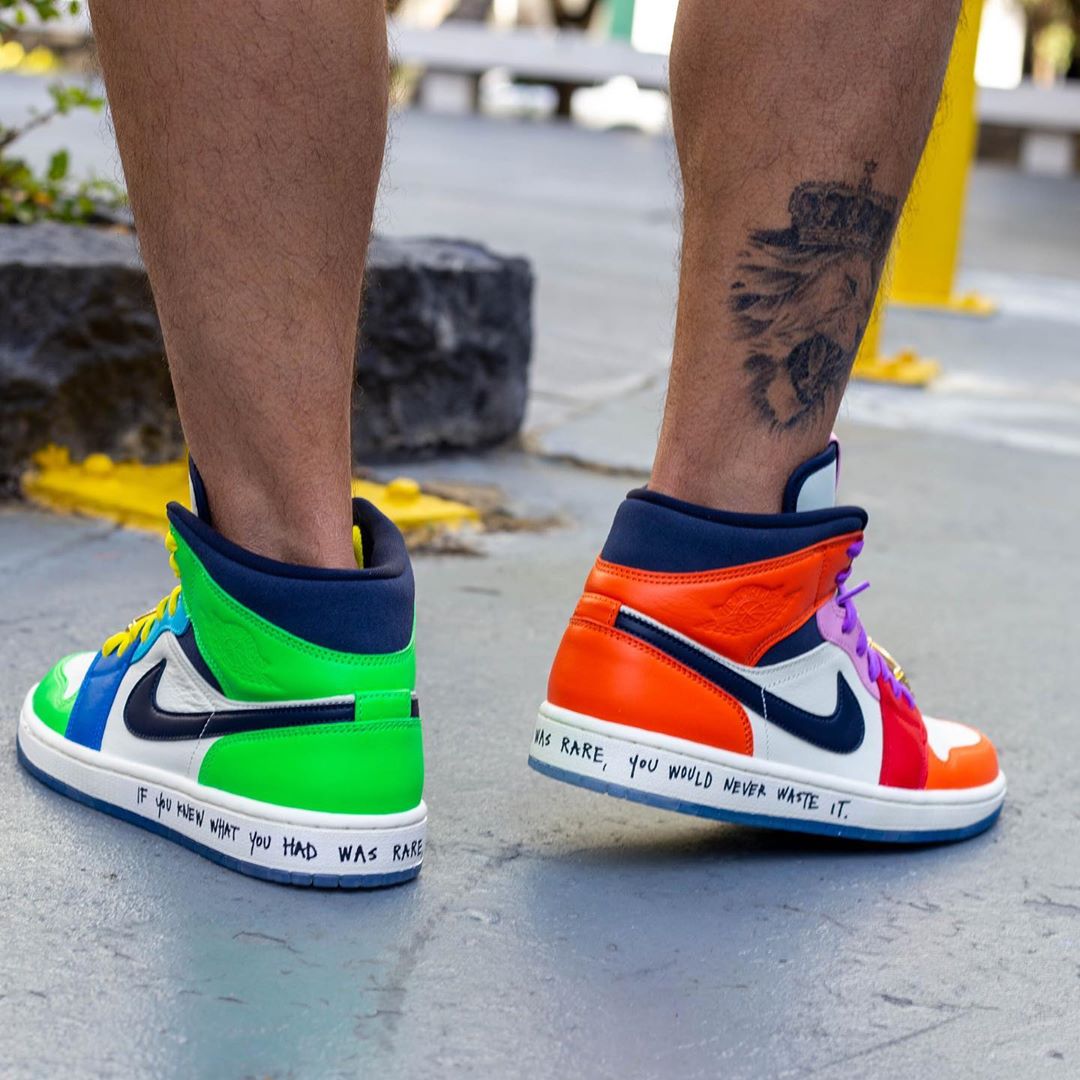 这双 Melody Ehsani x Air Jordan 1 Mid WMNS “Fearless”,由洛杉矶时装品牌 ME 主理人 Melody Ehsani 设计。