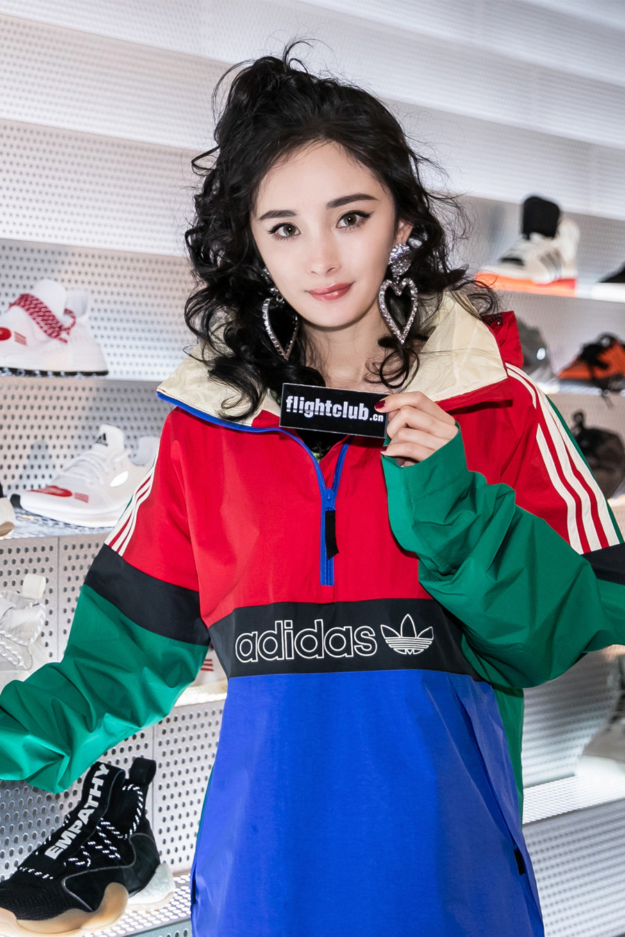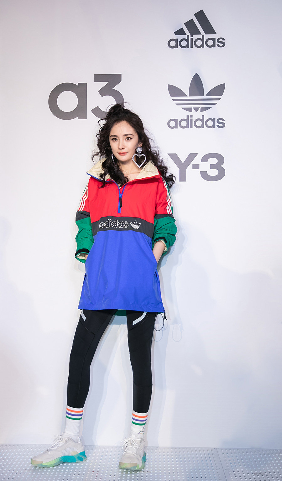 adidas Originals 大中华区品牌形象代言人杨幂在当晚突然空降,以醒目又活力四射的三叶草穿搭示人,无论是上身的撞色运动服,还是脚上的 Streetball 复古鞋款,都瞬间成为人气爆棚的「杨幂同款」!
