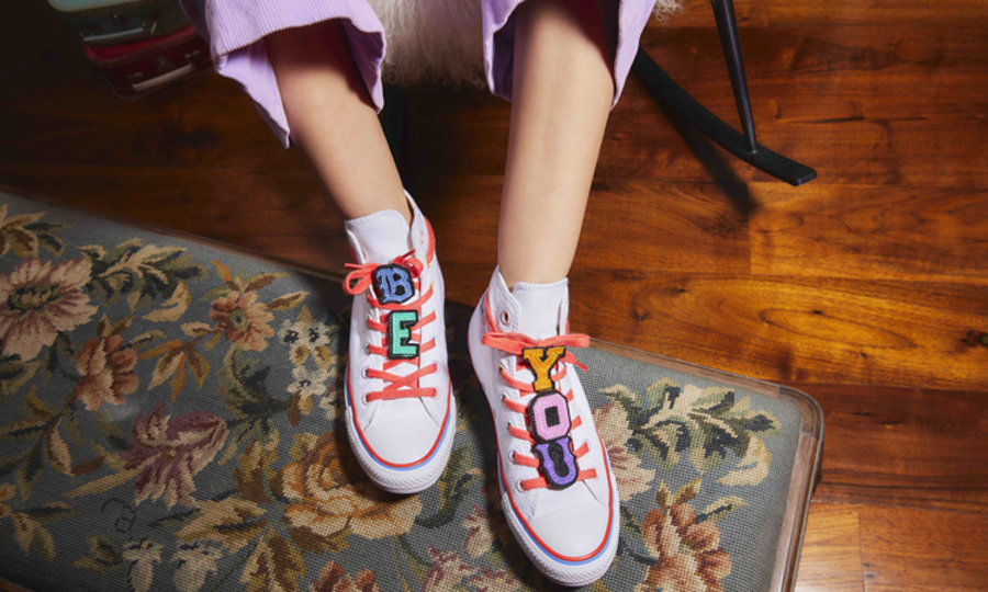 最后一款高帮 Chuck Taylor 采用白色为主色,彩色线条环绕鞋身,最大亮点当属 “Be You” 字样的鞋带扣,为 Mille 本人的口头禅,分饰在左右两只鞋上。