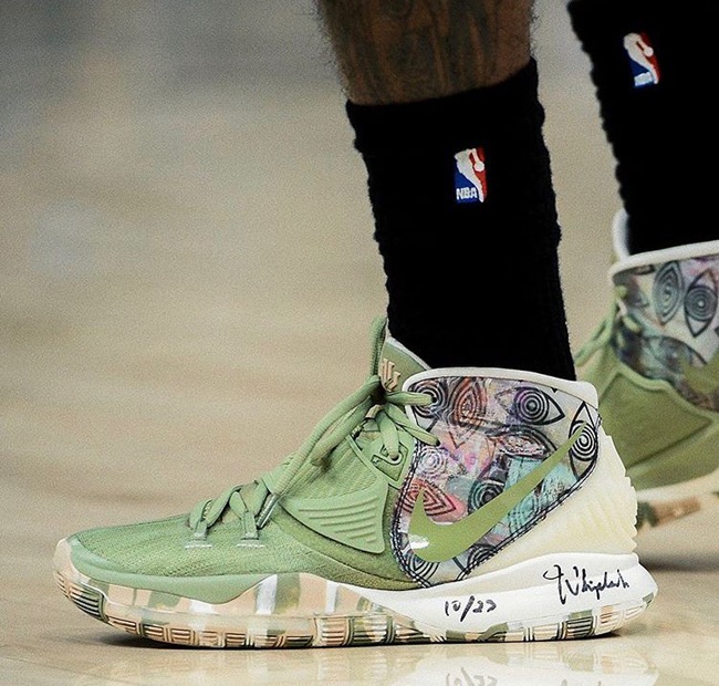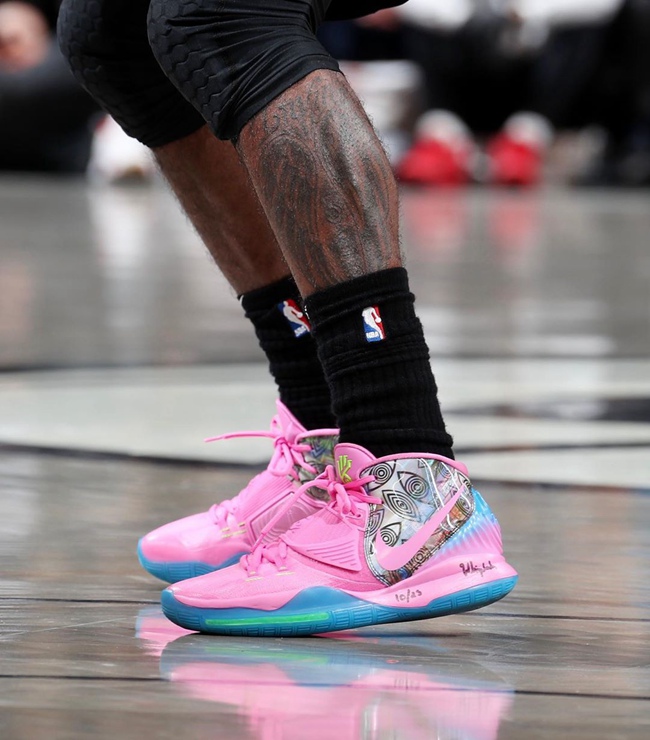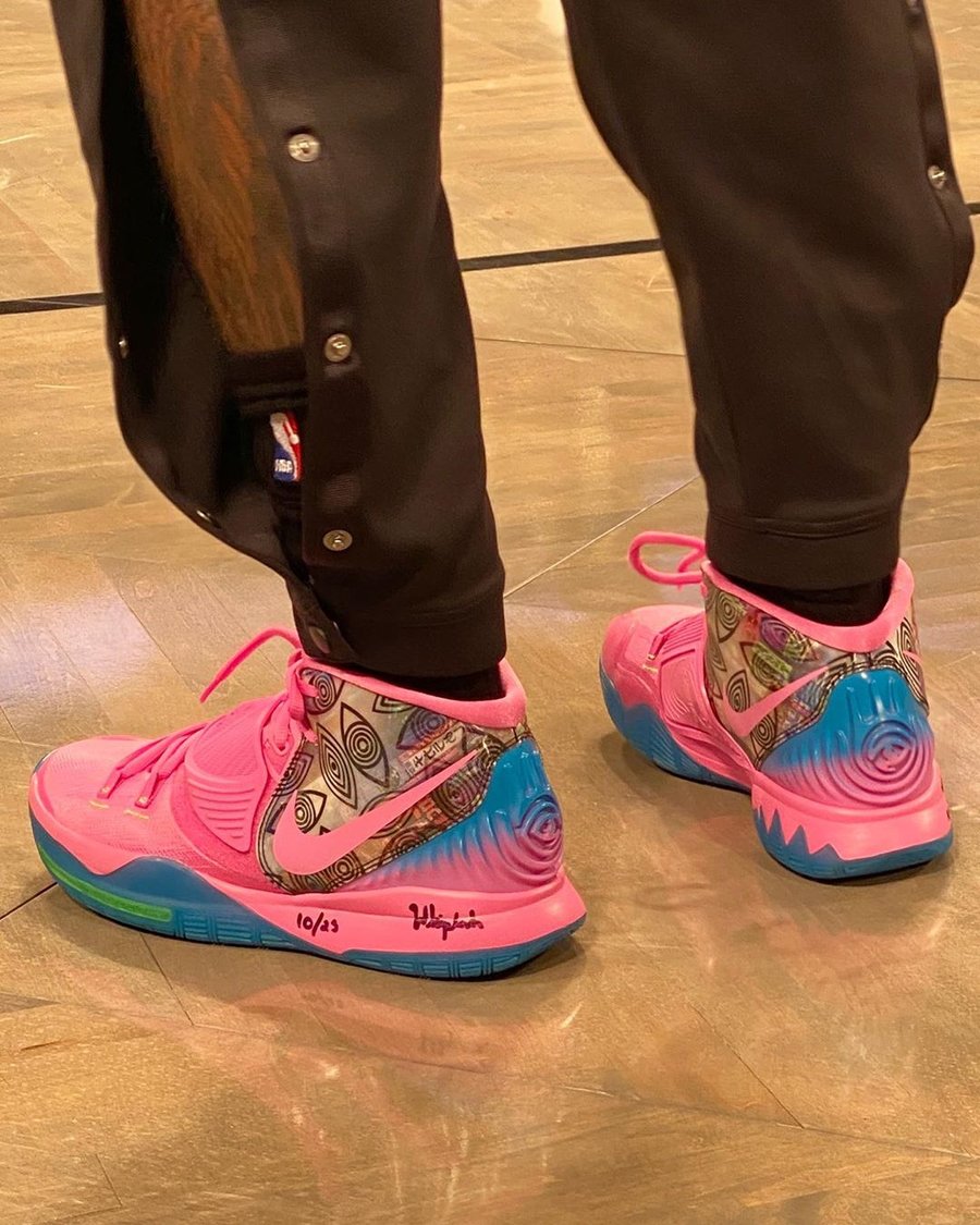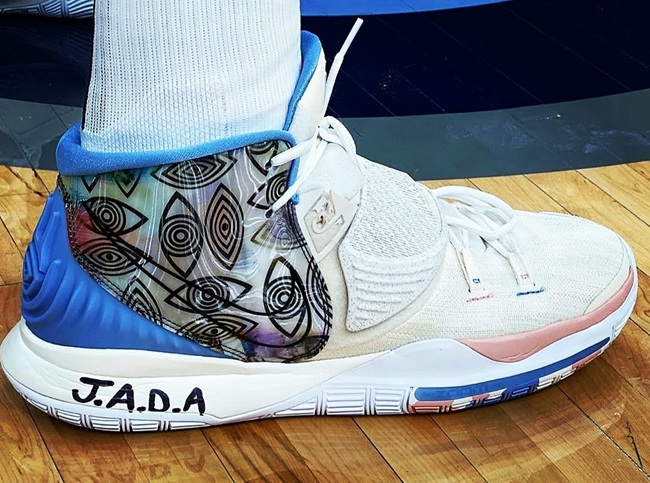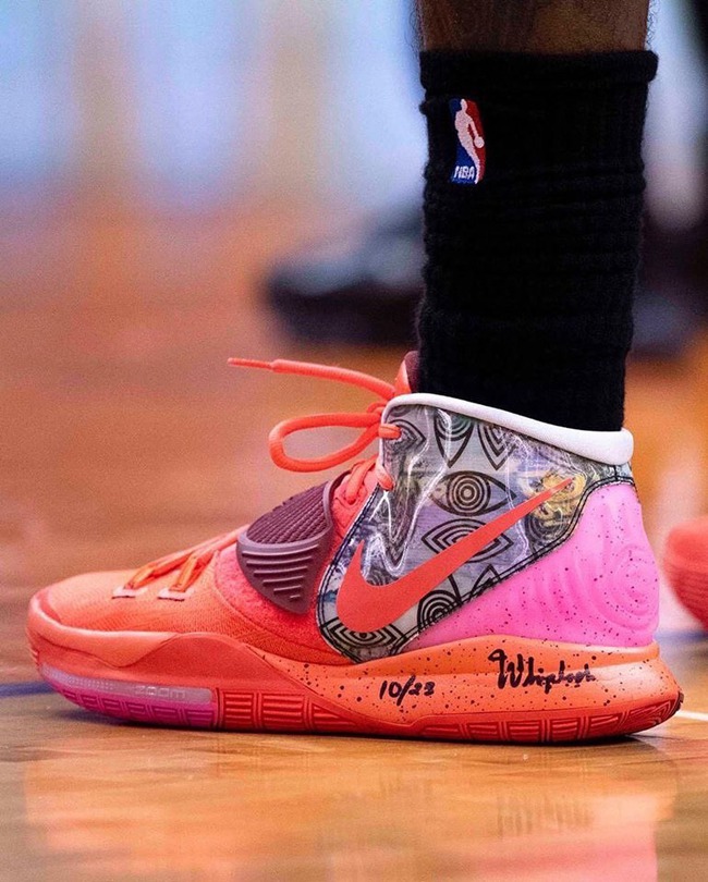 值得注意的是,欧文个人上脚的配色,Swoosh 有对应色彩填充,与其他球员上脚的市售版本有所不同。