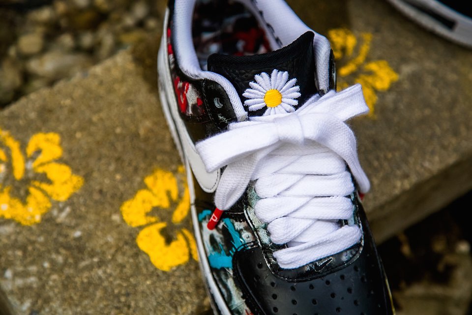 细节方面也表现出权志龙超凡的设计功底,鞋垫印有极为复杂的涂鸦和印花,鞋舌上的雏菊图案也极为醒目,为整双联名增添不少艺术气息。