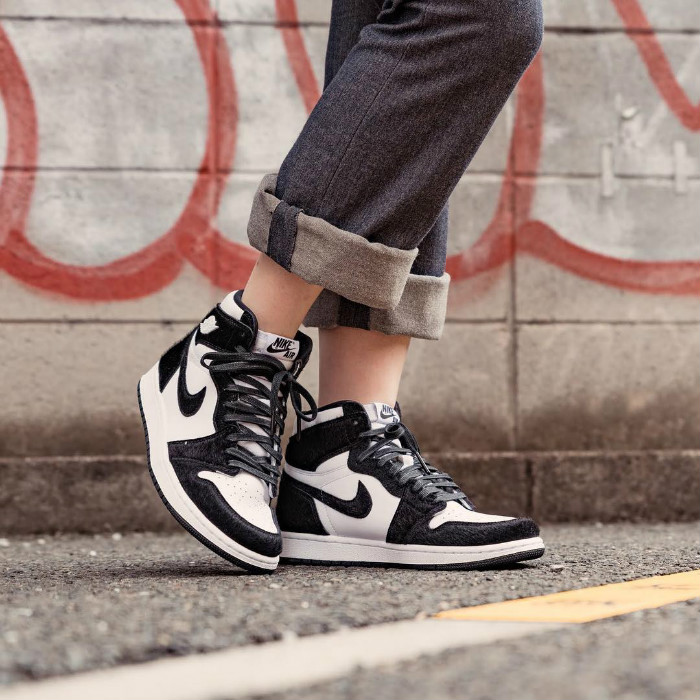 同样是黑白 Air Jordan 1,这双熊猫配色就更加纯粹。通体只有黑白两色,上脚穿搭没毛病。