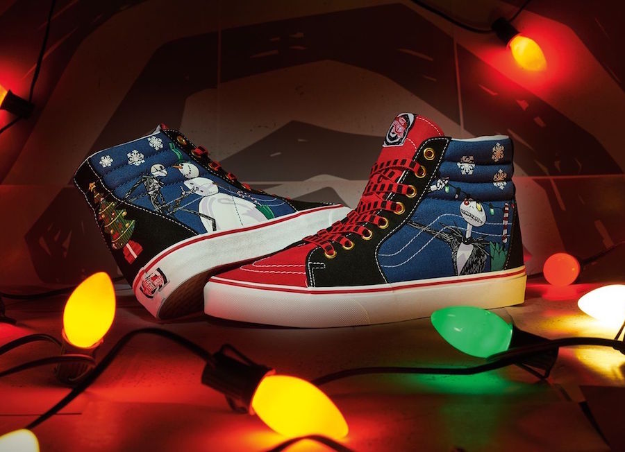 此次双方以经典滑板鞋 Sk8-Hi 为设计蓝本,并融入迪士尼经典作品《圣诞夜惊魂》的元素。