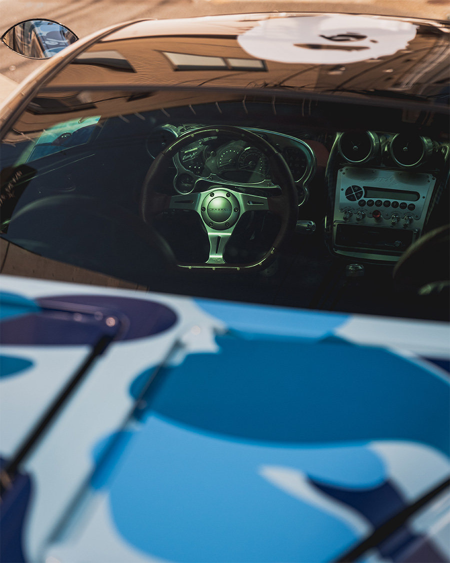 眼前这辆 BAPE®️ x PAGANI Zonda 再现了标志性的楔形车鼻和水滴状玻璃车厢,承袭了手工制作的完美质感,车身以 BAPE®️ 最具代表性的蓝色 ABC 迷彩图案呈现,BAPE®️ LOGO 结合数字 20,加上 Zonda 字样,直击主题,独特又奢华到极致的强大气场扑面而来。