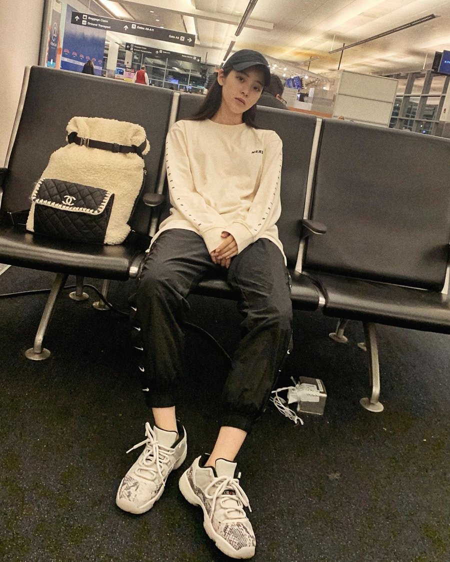 男友力 Max 的机场照,上脚并不热门的白蛇 Air Jordan 11 也有着不俗的搭配颜值。