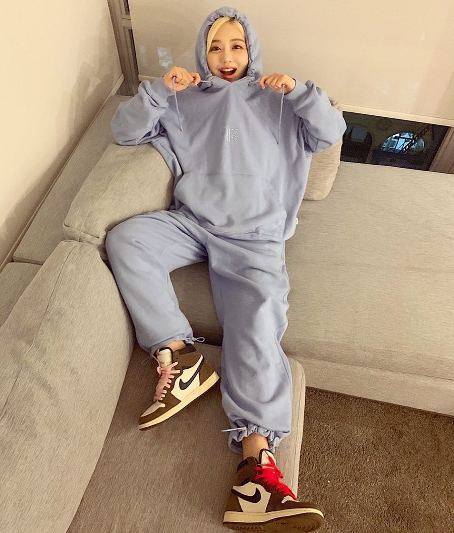 Travis Scott x Air Jordan 1 是她夏秋冬三季都爱穿的心水鞋款,