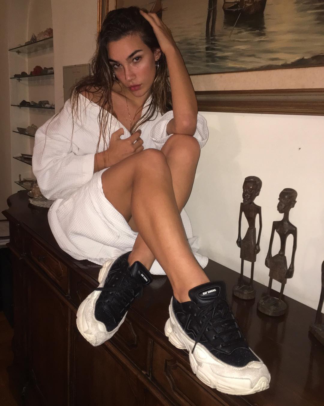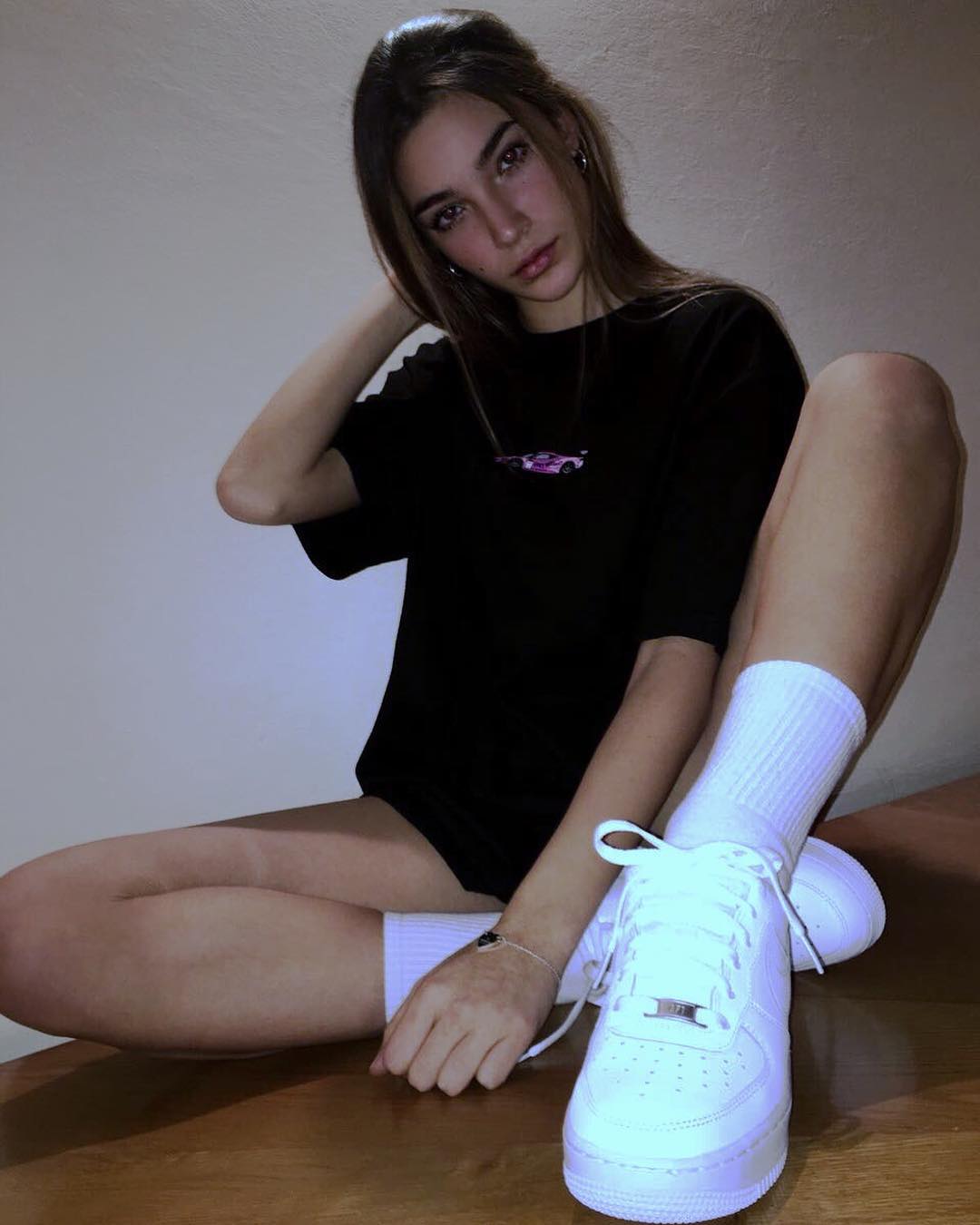 普普通通的 Air Force 1 愣是让她穿出了时装型录的性感格调。
