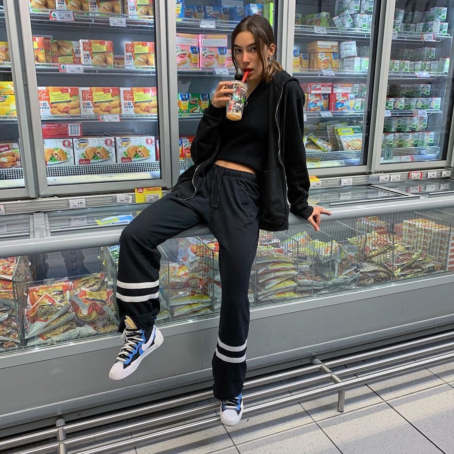 今夏大热的 Sacai x Nike Blazer Mid 是她近期频频上脚的青睐款,