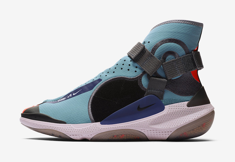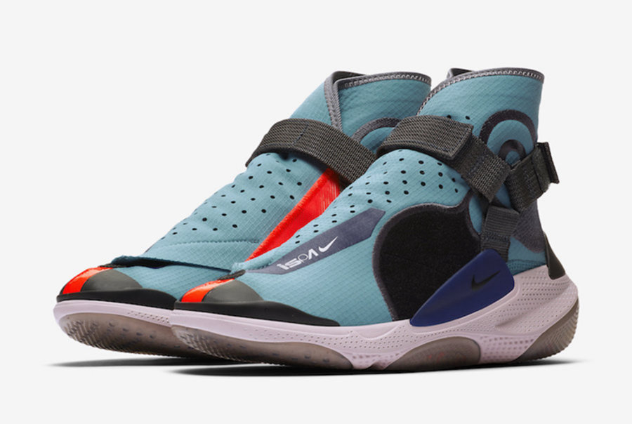 两款配色分别以酷黑以及湖水蓝配色示人,中帮造型示人,极具科幻主义的外观同时兼具速度感。