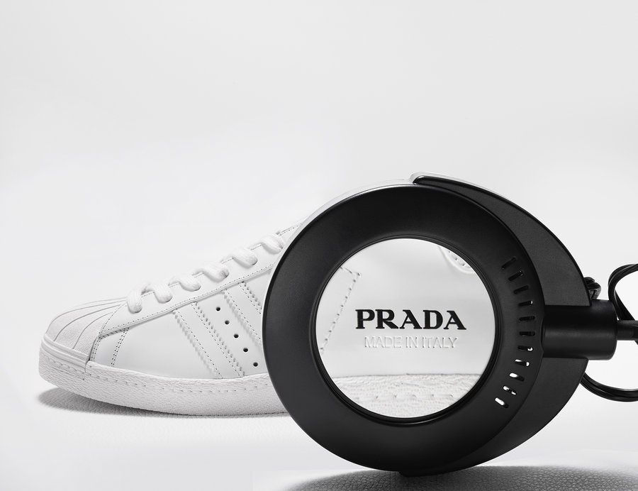 诞生于上世纪 70 年代的时代经典款,adidas Superstar 本身就是双很有文化底蕴的鞋款,这样的款式也正符合 Prada 对此次跨界联名的期许。
