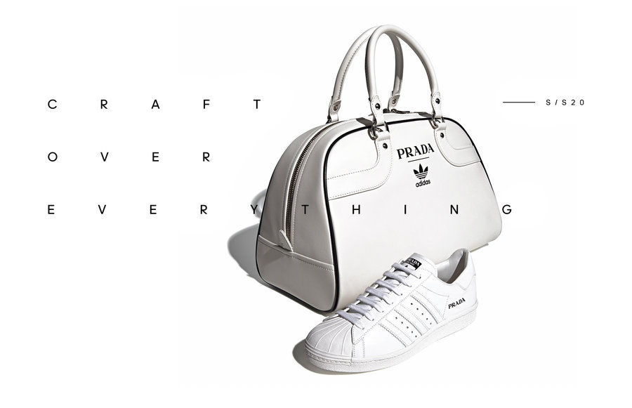 昨日双方的联名款式正式曝光,低调的贝壳头 adidas Superstar 与招牌保龄包(Bowling bag),以 Prada 一贯的简洁质感低调呈现。