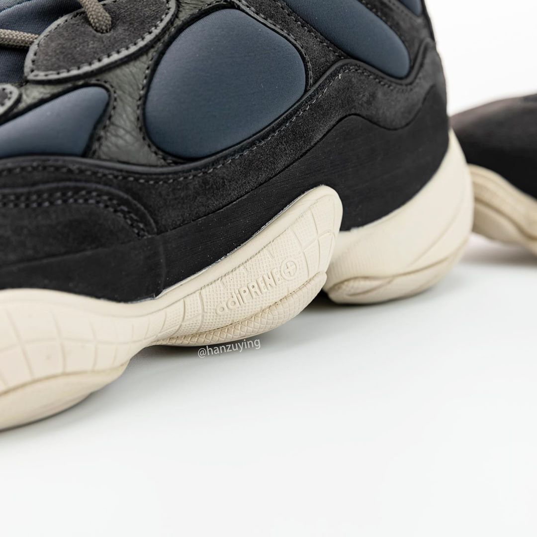 粗犷质感的多材质拼接鞋身,让人一眼就能联想到 Yeezy 500 一脉相承的造型。