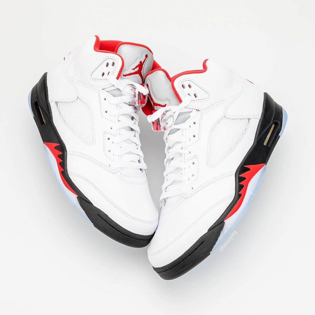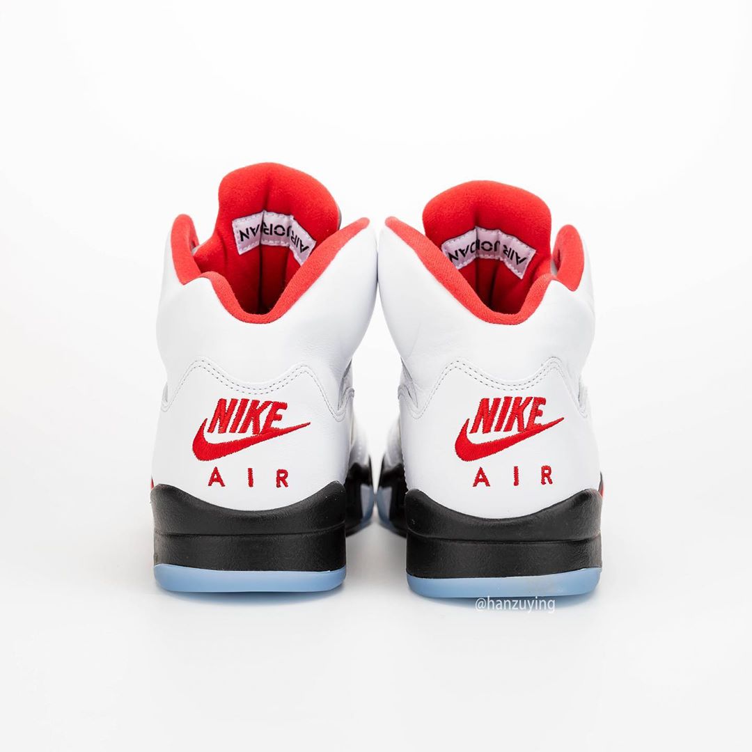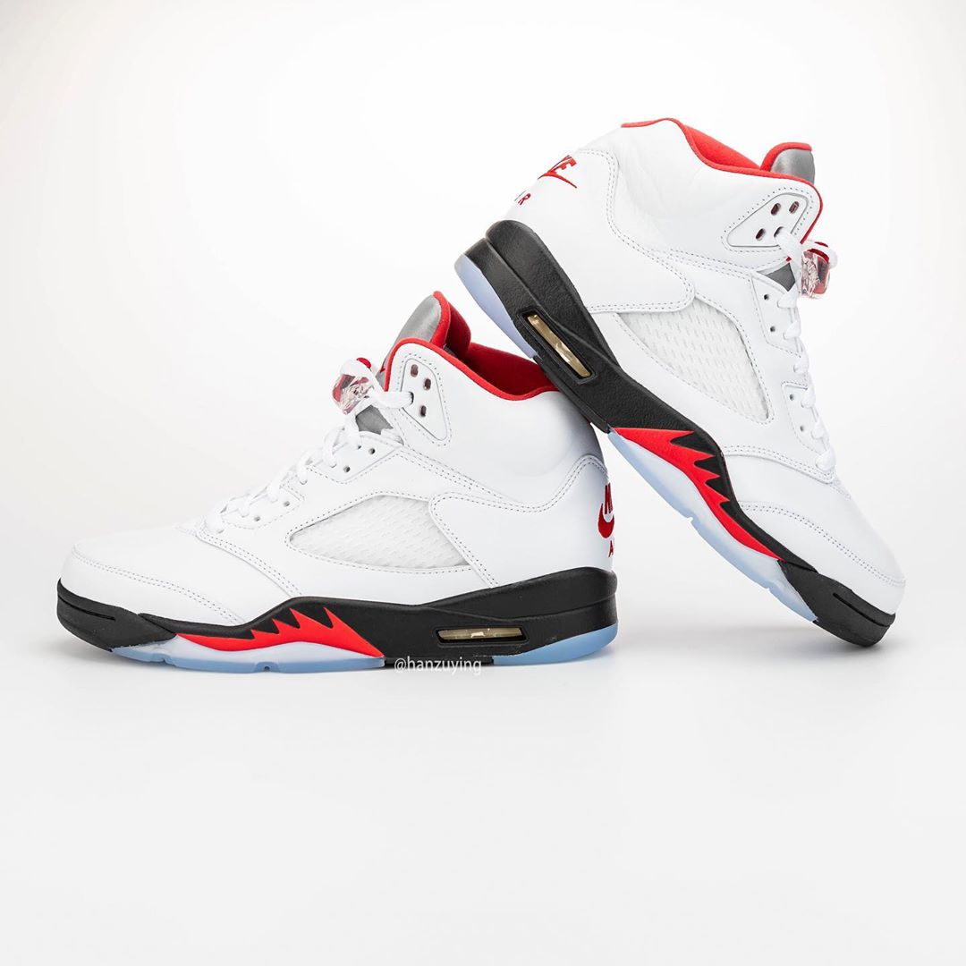 近日,由球鞋曝料博主 hanzuying 带来了一组即将复刻的新版本 Air Jordan 5 “Fire Red” 实物细节照。