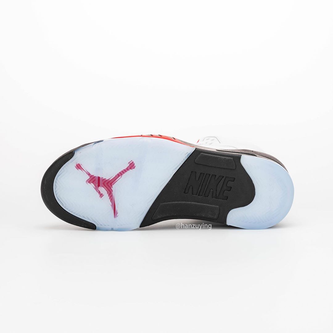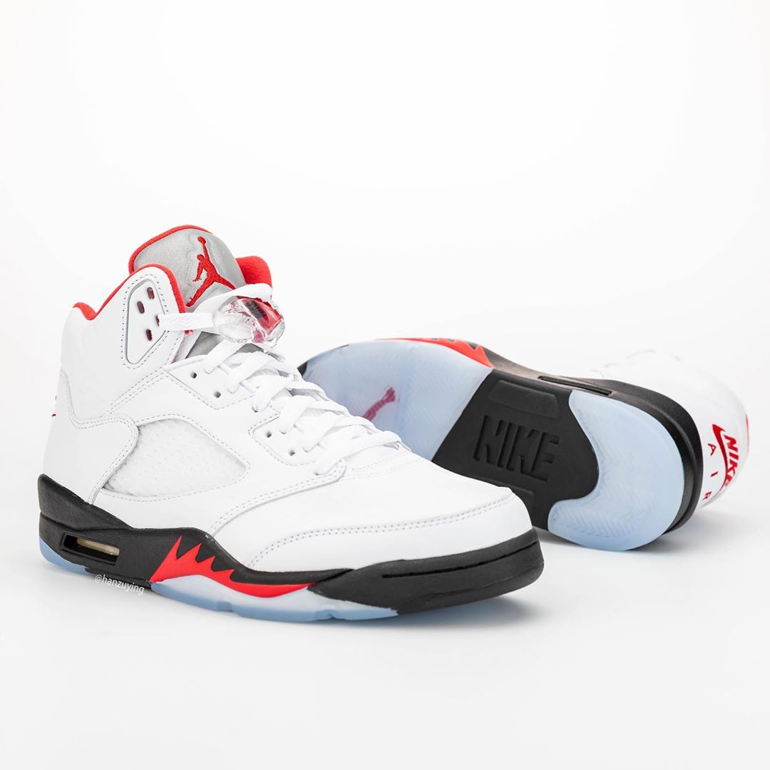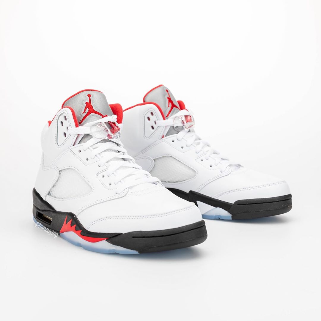 近日,由球鞋曝料博主 hanzuying 带来了一组即将复刻的新版本 Air Jordan 5 “Fire Red” 实物细节照。
