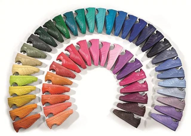 2015 年以经典贝壳头 Superstar 为原型带来 Supercolor 系列,从冷色调到暖色调,推出多达 50 款配色选择。