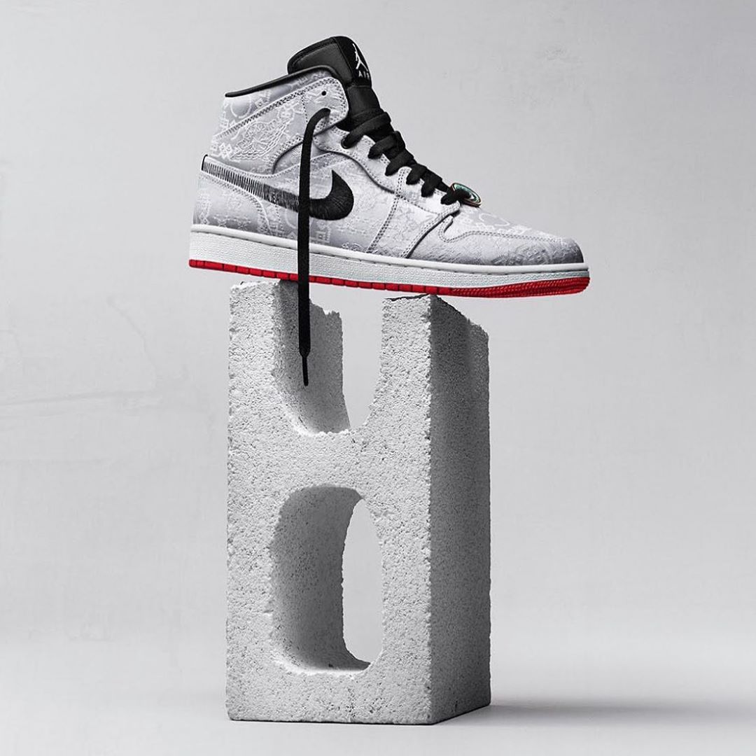 紧接着又和 Jordan Brand 合作带来白色丝绸鞋面的 Edison Chen x Air Jordan 1 Mid。