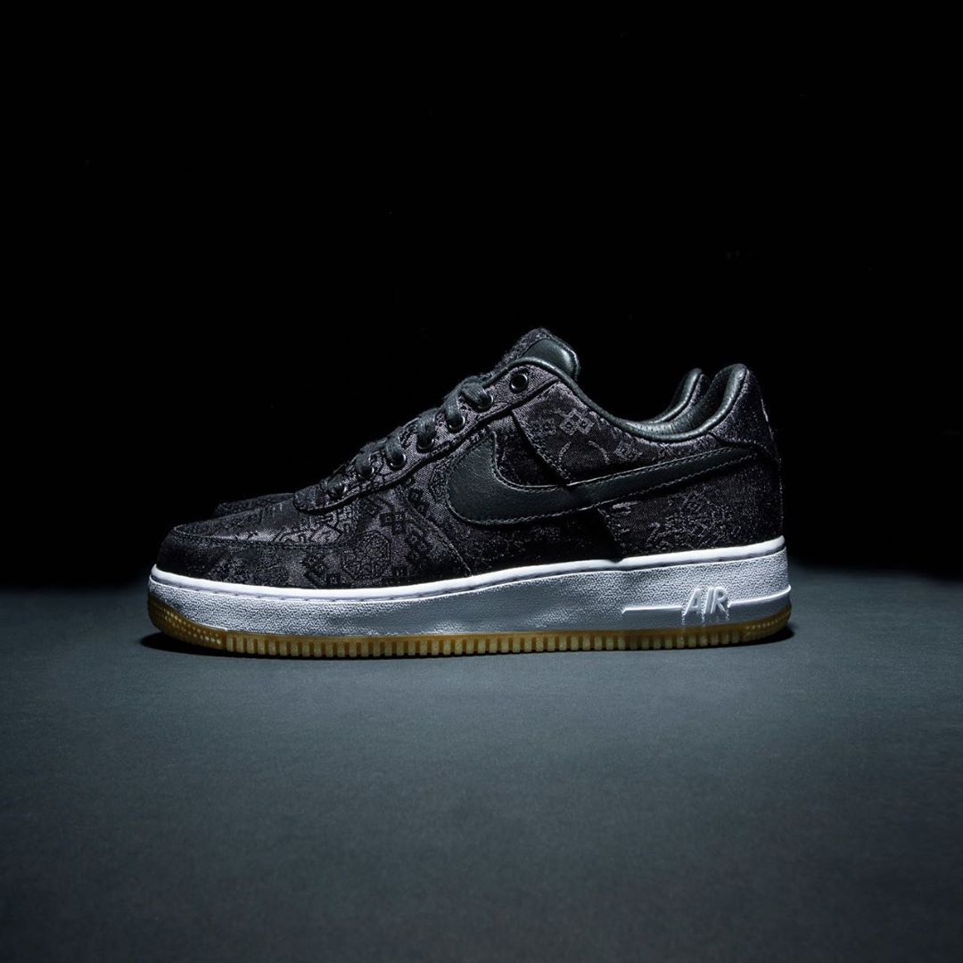刚刚说到的黑丝绸 CLOT x fragment design x Air Force 1,无疑是近期球鞋圈重量级最高的新品。