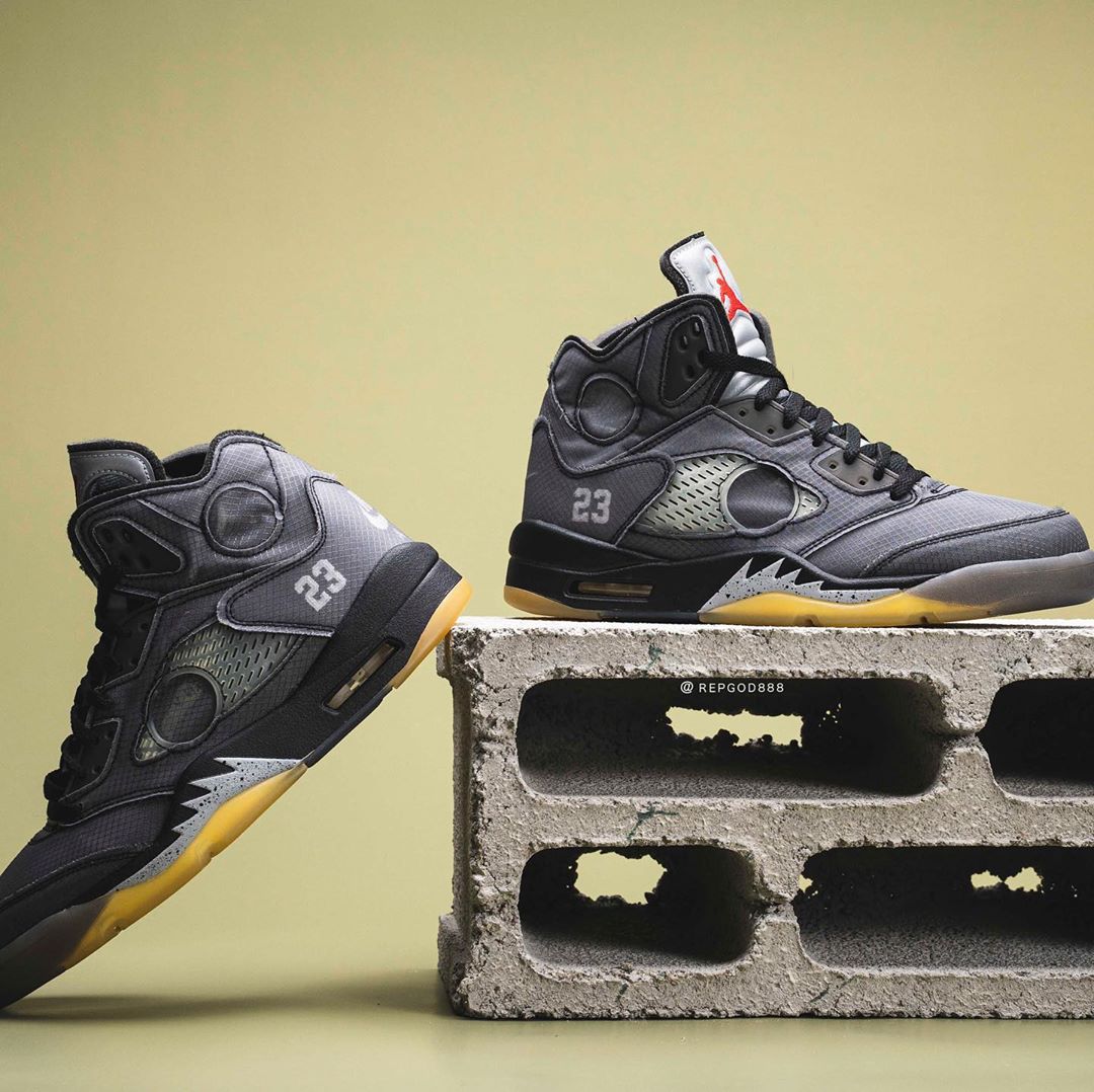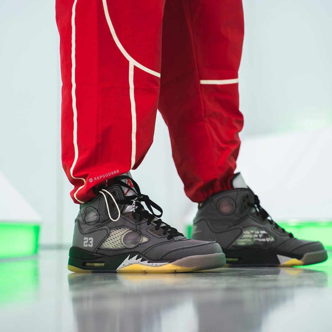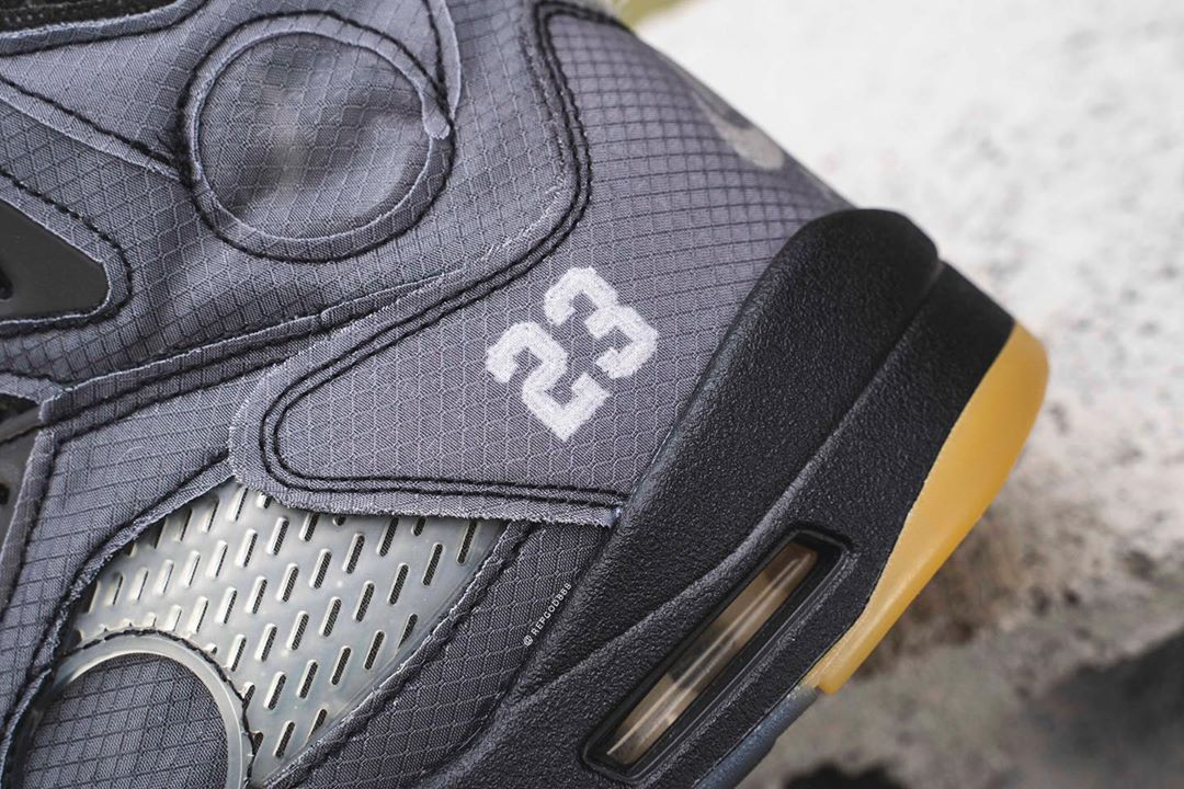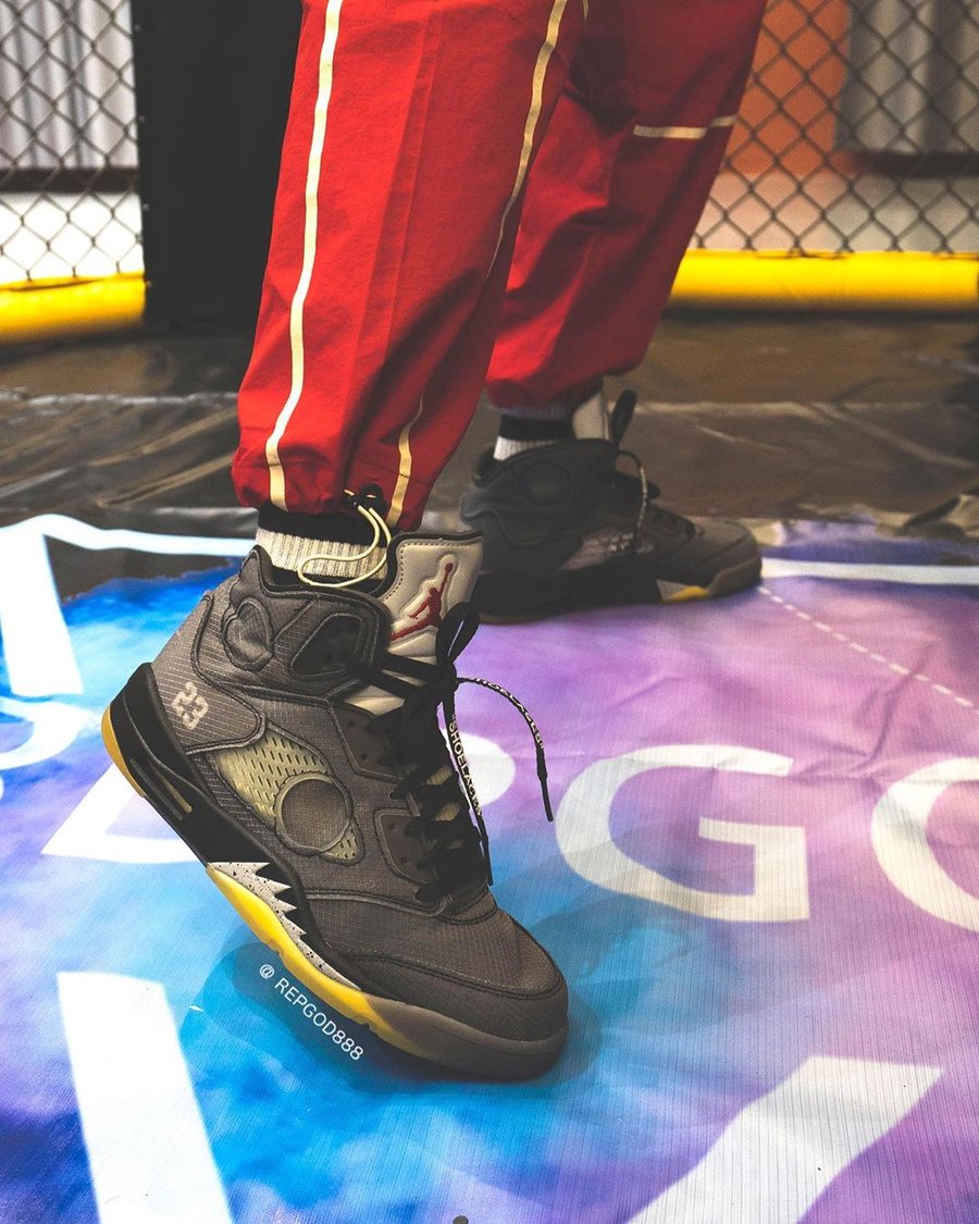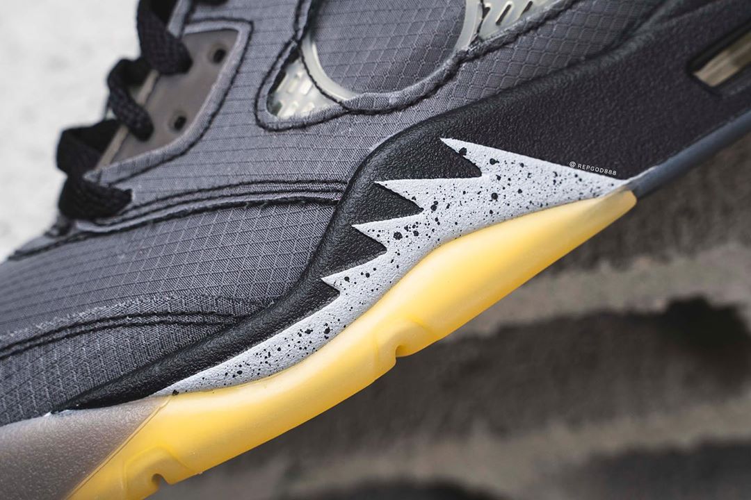 近日,由海外球鞋曝料博主 Kickwhoshow,抢先释出 OFF-WHITE x Air Jordan 5 的完整实物细节。