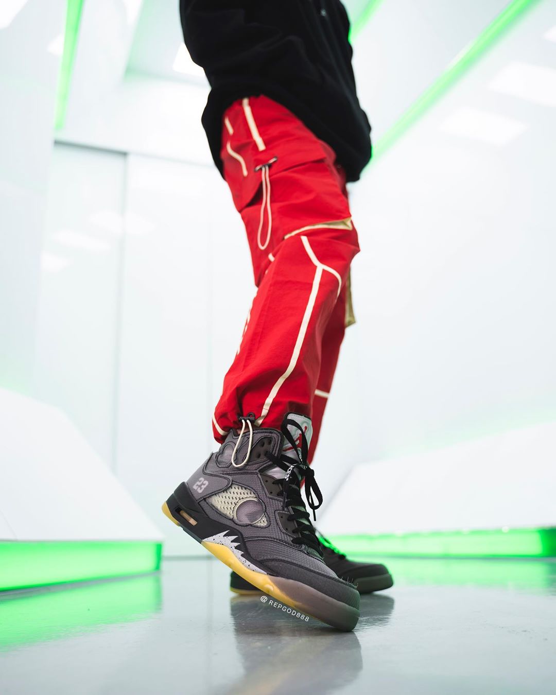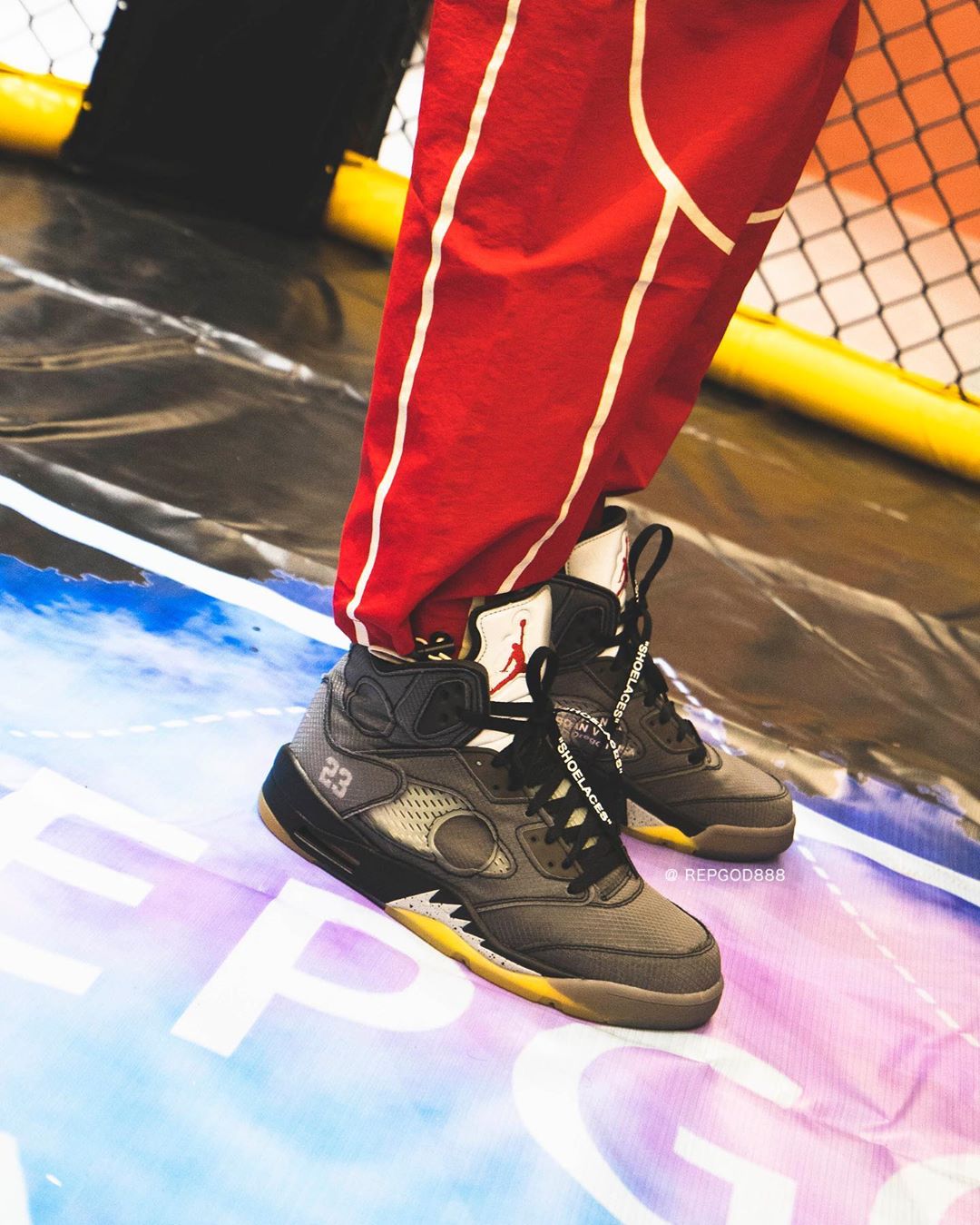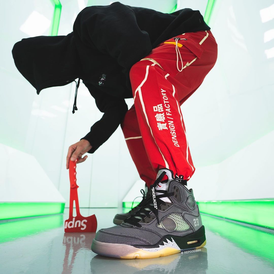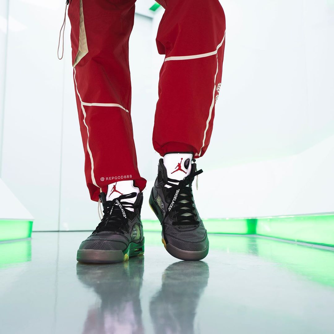近日,由海外球鞋曝料博主 Kickwhoshow,抢先释出 OFF-WHITE x Air Jordan 5 的完整实物细节。