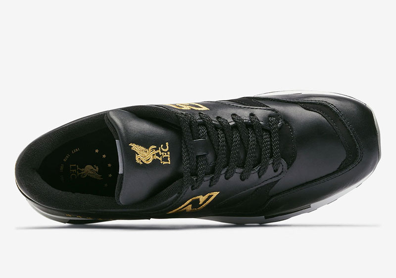 以 New Balance 1500 为蓝本,整体采用黑金的华贵装扮示人!不仅鞋舌点缀利物浦利弗鸟刺绣,后跟部位更通过传统的六星彰显 6 次欧冠冠军的傲人成绩!