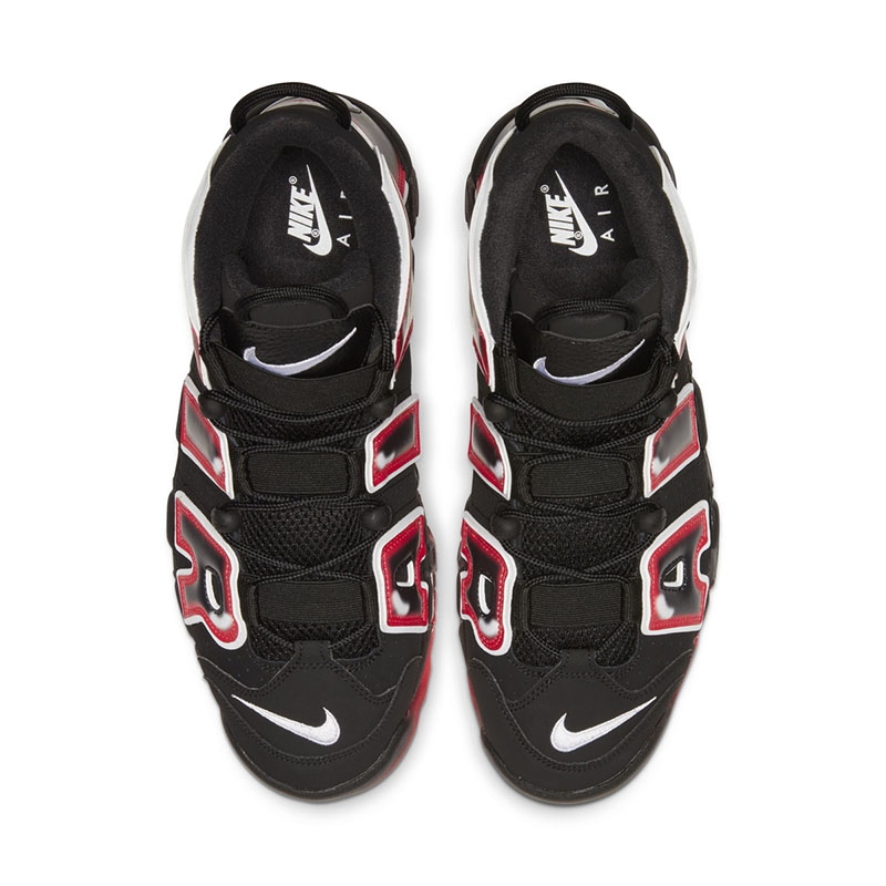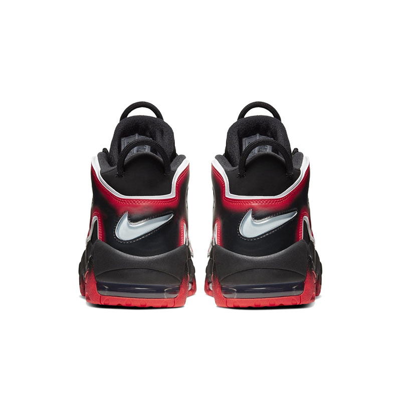 眼前这款 Air More Uptempo 96 “Laser Crimson” 整体采用黑色覆盖鞋身,红色大底过度!最大亮点在于鞋身醒目 AIR 字样辅以白色衬托,细看在边缘还有额外的笔触加持,营造立体的视觉效果。