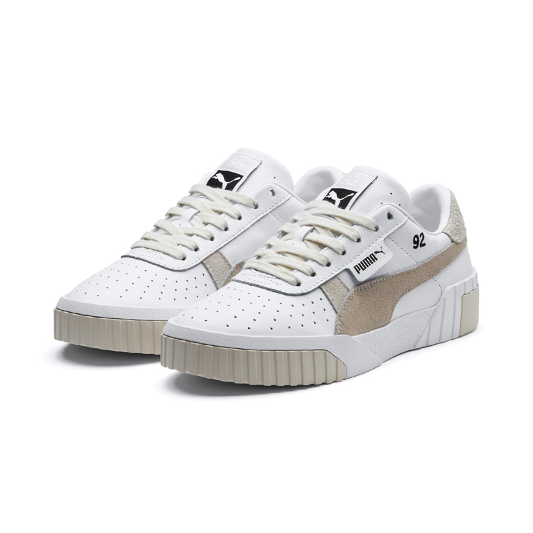 另外两款 Cali Suede 在面料的选择上十分考究,分别选用卡其色绒面和白色光滑皮革作为鞋面,鞋身侧面辅以翻毛材质的 PUMA Logo 点缀,整双鞋质感得到提升。