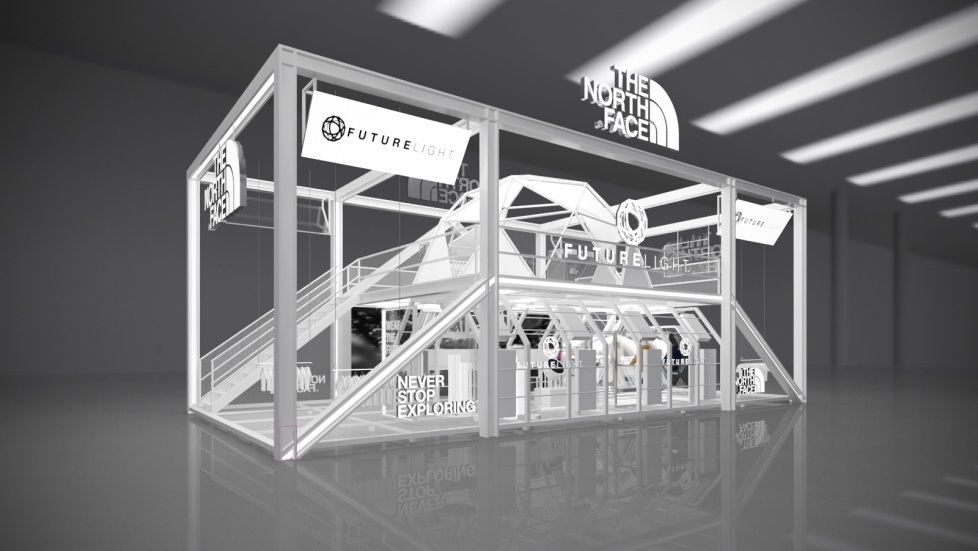 The North Face 更是打造极具科技感的体验专区,能够模拟气流与潮湿环境,让亲临现场的朋友最直接的体验到 Futurelight 面料与传统防水面料的不同!