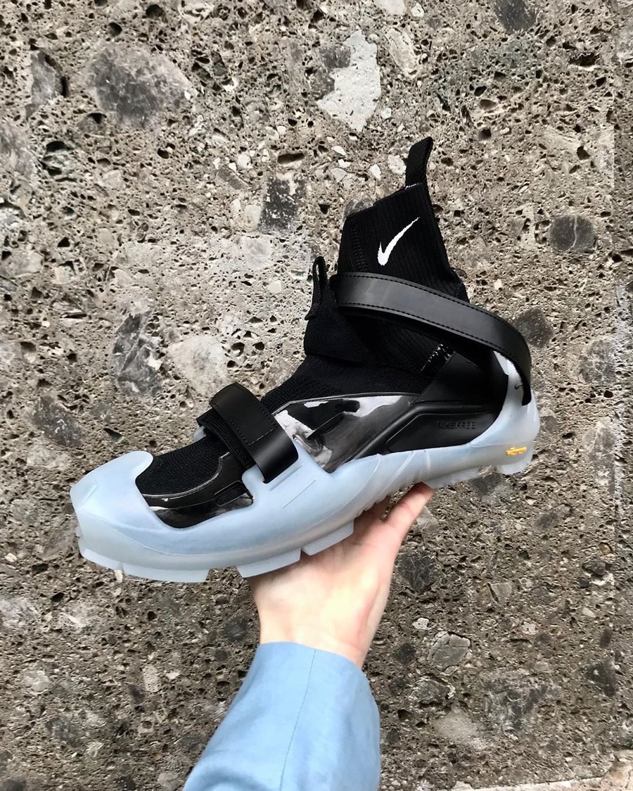 黑色 Nike Free 内靴,鞋身透明支撑,浅蓝色半透明可拆卸 V 底。整体设计比前两双更有风格。