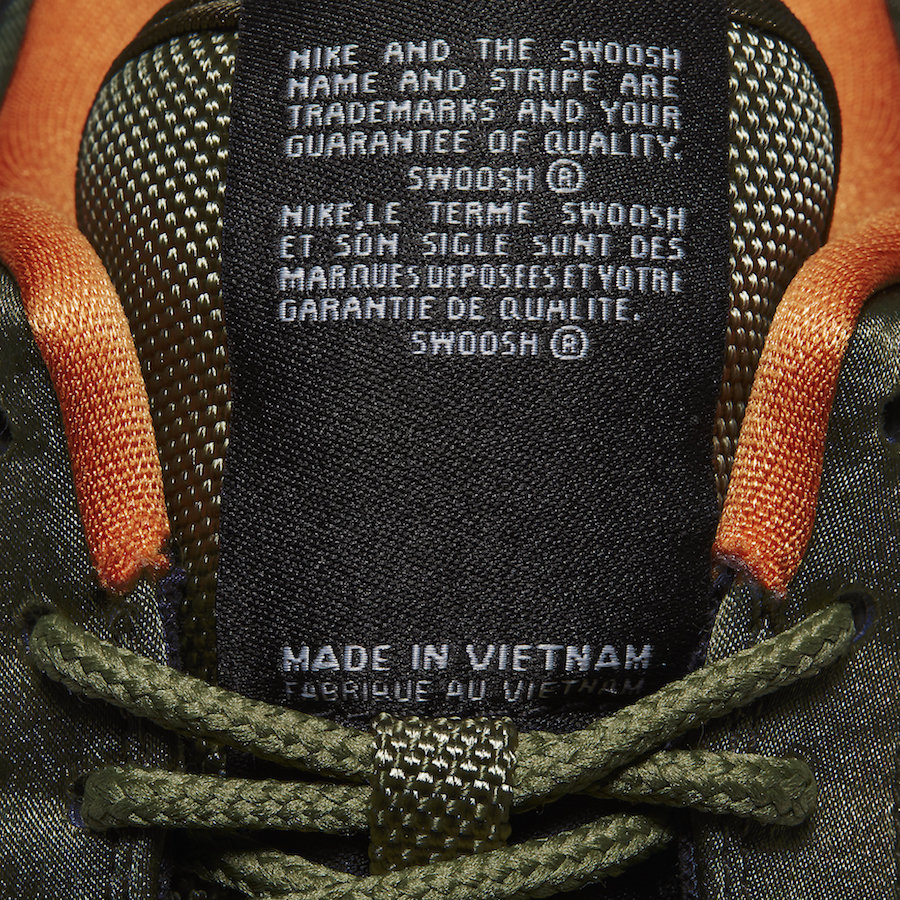 这双鞋以军绿色为基调,绸布料打造,前掌、侧身以匝线勾勒出飞行夹克内衬样式的格纹。