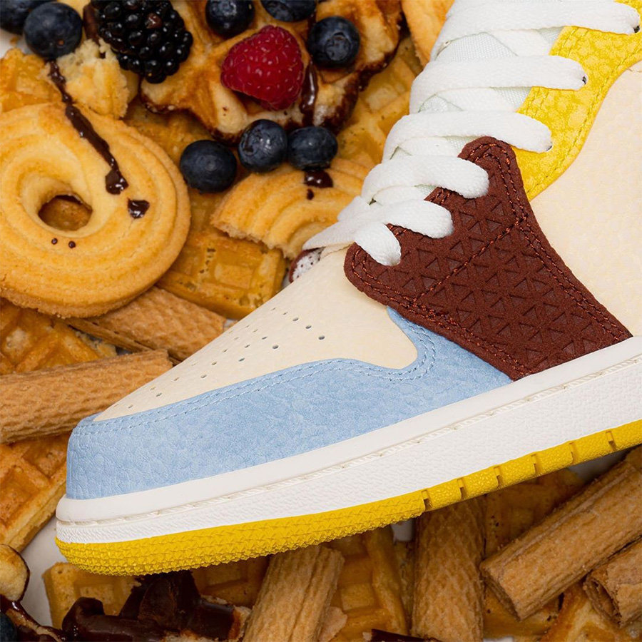 最受关注的当然是陈冠希的 Air Jordan 1 Mid “Edison Chen”,延续了白丝绸的清爽感受,白红鞋底也是 OG 风范十足的经典感受,刮开首层鞋面之后有着丰富的配色表现力,也让这双鞋拥有不错的可玩性。