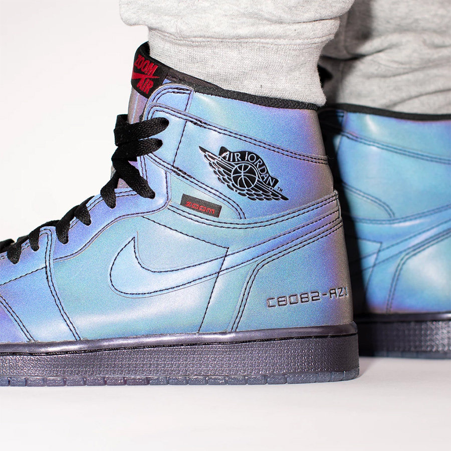 被称为「变色龙」配色的 Air Jordan 1 “Zoom Fearless” 则是今年颇具看点的创新之作,不仅有全鞋身的炫彩 3M 反光效果,更是搭载了全掌 Zoom Air 气垫,让这双鞋的脚感得以明显的提升。