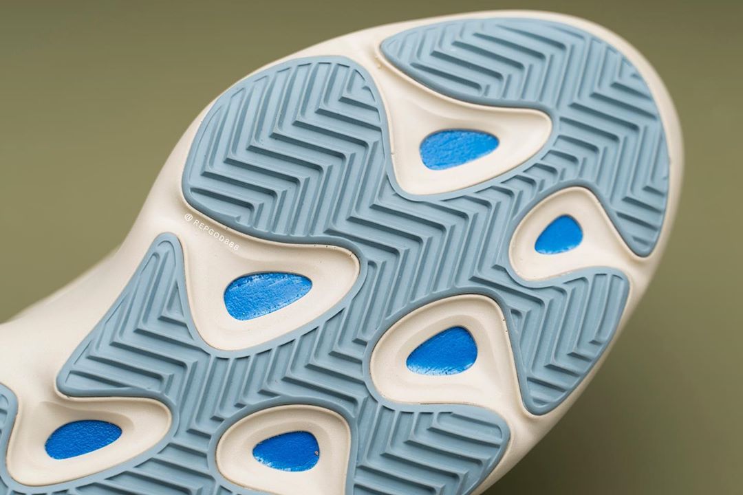 另外一处明显的变化在于这双鞋取消了 Boost 缓震,取而代之的是蓝色缓震胶,具体脚感如何只能等到正式发售一探究竟。
