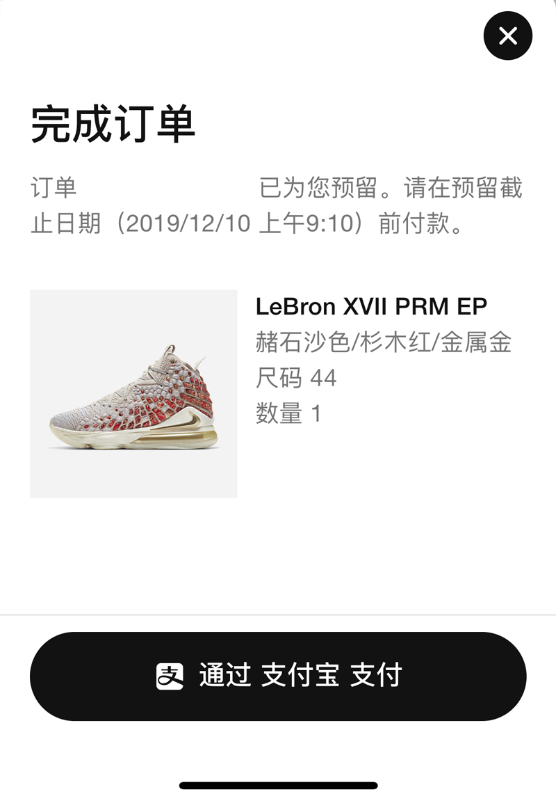 与 SNKRS APP 不同的是,在 Nike APP 中签后订单只保留 10 分钟(SNKRS APP 为 15 分钟)。