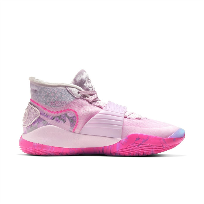 本次以 Nike Zoom KD 12 为蓝本,采用粉红覆盖整个鞋身,外底则采用类似大理石纹理的双重色调示人。