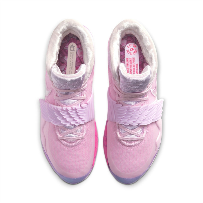 拥有人见人爱的小翅膀细节,风骚无比的粉红「抗乳腺癌」配色再度注入杜兰特 KD 战靴中,而这也是 KD 球鞋人气最高的经典主题之一!