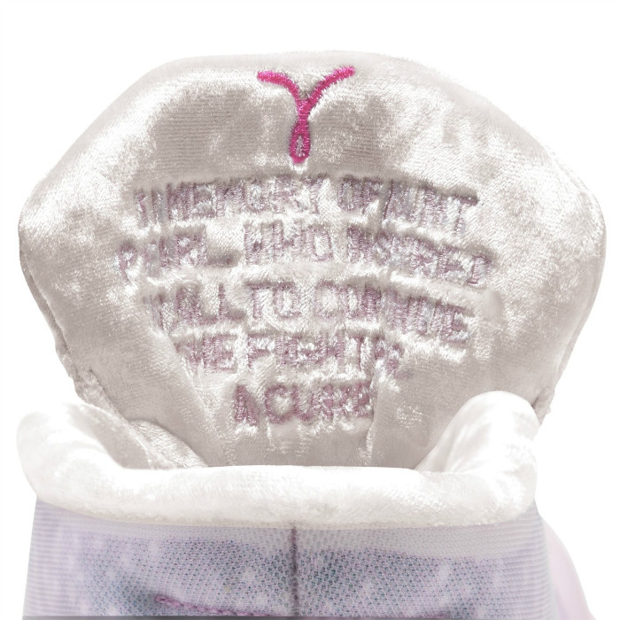 鞋舌著有 Aunt Pearl 字样,以此纪念因癌症去世的家人。
