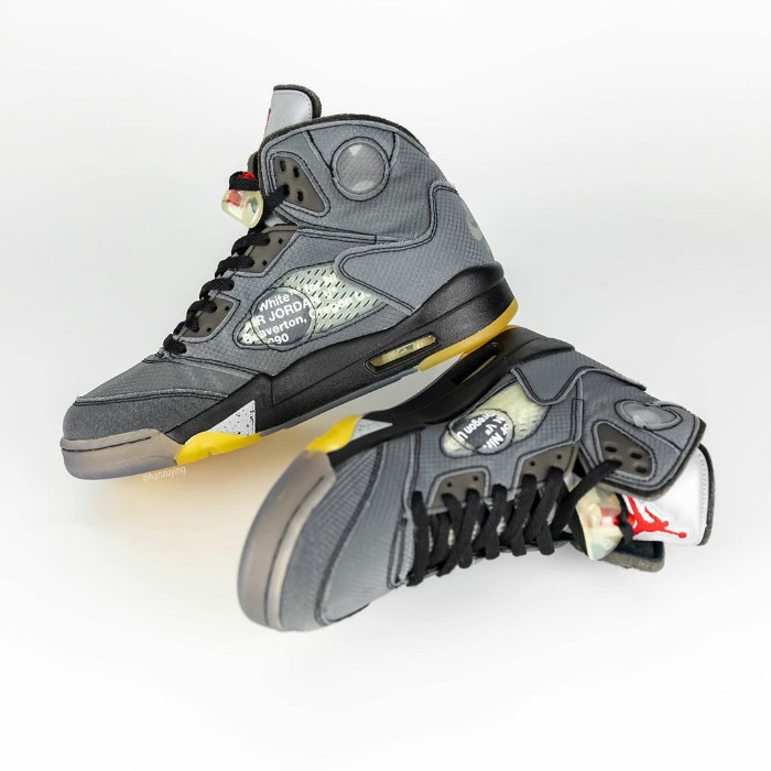 为庆祝 Air Jordan 5 诞生三十周年,OFF-WHITE 与 Jordan Brand 打造的第二款联名鞋型 Air Jordan 5 近期频繁刷屏!