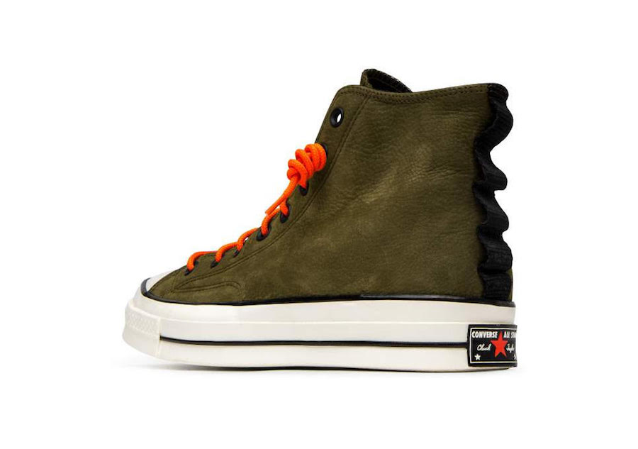 Converse Chuck 70 系列,一直是不少鞋迷鞋柜中必备的鞋款。 醒目简洁的外形轮廓,以各种风格的鞋面装饰,都能呈现出不俗的造型与气质。 近日,一款满满军事风的 Converse Chuck 70 Hi 惊艳登场。 这双鞋采用军绿色柔软皮革打造,辅以暖橙色鞋带点缀,碰撞出格外抢眼的视觉效果。 同时,后跟处的多层鞋提设计也为整体造型丰富了层次感,上脚效果想必不俗。 目前的消息称,这款全新配色将于近期陆续发售,感兴趣的朋友务必多加留意 Converse 官网。