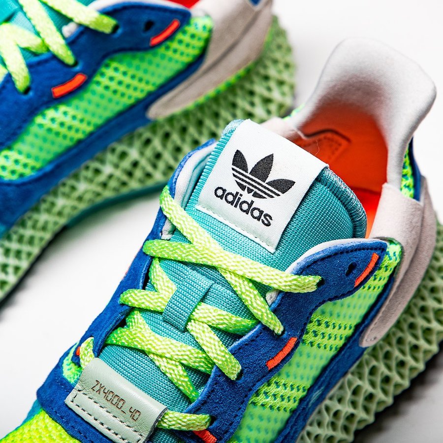 眼前这款全新配色 adidais ZX 4000 4D 以荧光绿搭配粉末蓝装饰鞋面,细腻的麂皮与编织材质组合,提升鞋身质感的同时,极大程度减轻鞋身重量。